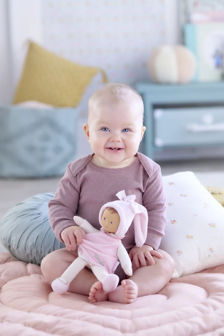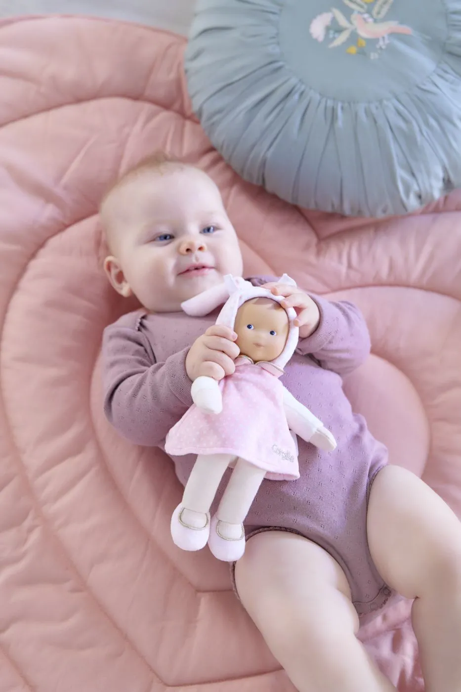 Prima prietena ideala pentru imbratisari, Miss Star Dreams este o papusa moale de 25 cm cu picioare atarnate, perfecta pentru bebelusi de la nastere. Este usor de prins si de luat oriunde, fiind ideala pentru copiii din primele luni de viata. Papusa este fabricata dintr-un material ultra-moale, deosebit de delicat cu mainile bebelusilor, iar senzatia tactila promoveaza abilitatile motorii timpurii. Cu o eticheta cu nume cusuta si lavabila la masina, este atat practica, cat si usor de ingrijit. Parfum de vanilie, cu aroma placuta si delicata de vanilie, Corolle creeaza o atmosfera confortabila care incalzeste inimile copiilor si invita la jocuri de rol creative.