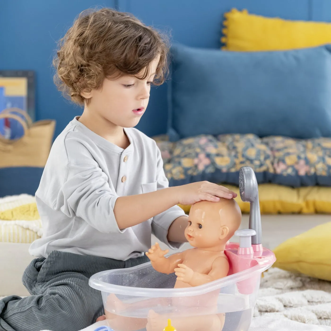Paul este o papusa mare Corolle pentru joaca si comportament ca adultii. Cu olita ei, biberonul de umplut si suzeta, este companionul perfect pentru antrenamentul la olita! Datorita corpului ei, delicat parfumat cu vanilie si fabricat in intregime din vinil moale la atingere, poate intra in apa in timp ce sta in sezut. Masoara 36 cm, o dimensiune perfect potrivita pentru bratele mici ale unui copil pentru a fi alintat, a fi mama si a imita actiunile care definesc cresterea unui copil. Cu ochii ei somnorosi, adoarme cand sta intinsa pe spate. Este imbracata in pantaloni scurti frumosi cu imprimeu floral si un maiou. Degetul mare poate fi tinut in gura. Paul are o colectie completa de haine si accesorii Corolle mon grand poupon pentru a imita gesturile de zi cu zi si a inventa scenarii de joaca multiple si variate. Nu poate purta ghete. De la 2 ani.