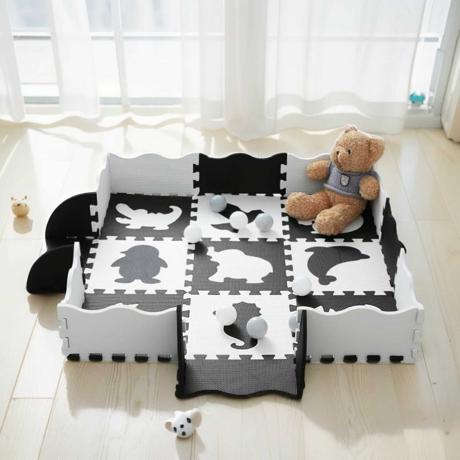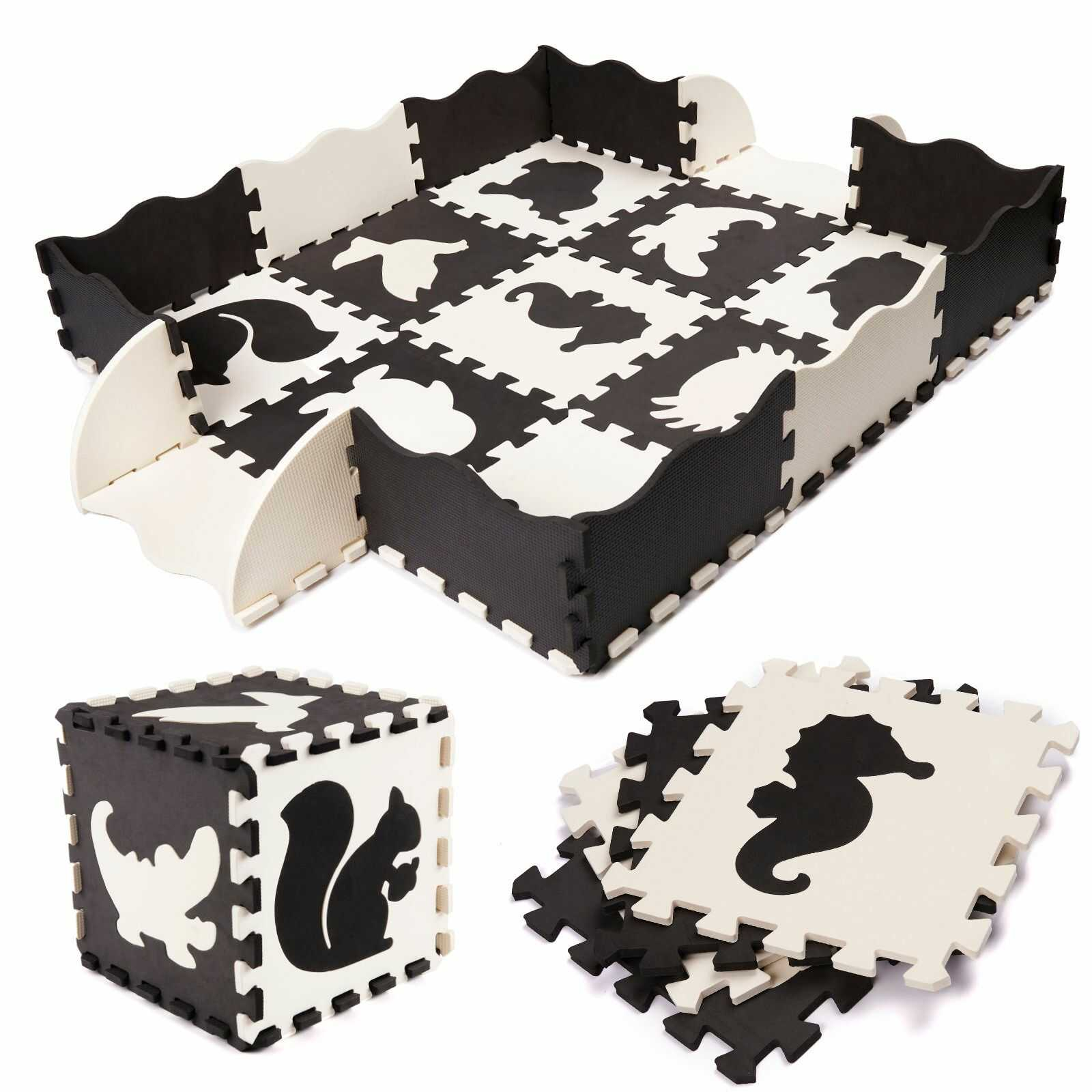 Covorul de joaca tip puzzle contrastant din spuma EVA este un produs multifunctional creat special pentru bebelusi si copii mici aflati in primele etape de explorare.