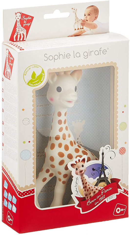 * Mirosul: mirosul aparte al cauciucului extras din arborele de Hevea o face pe Sophie sa fie usor de recunoscut de catre bebelus dintre toate jucariile sale.