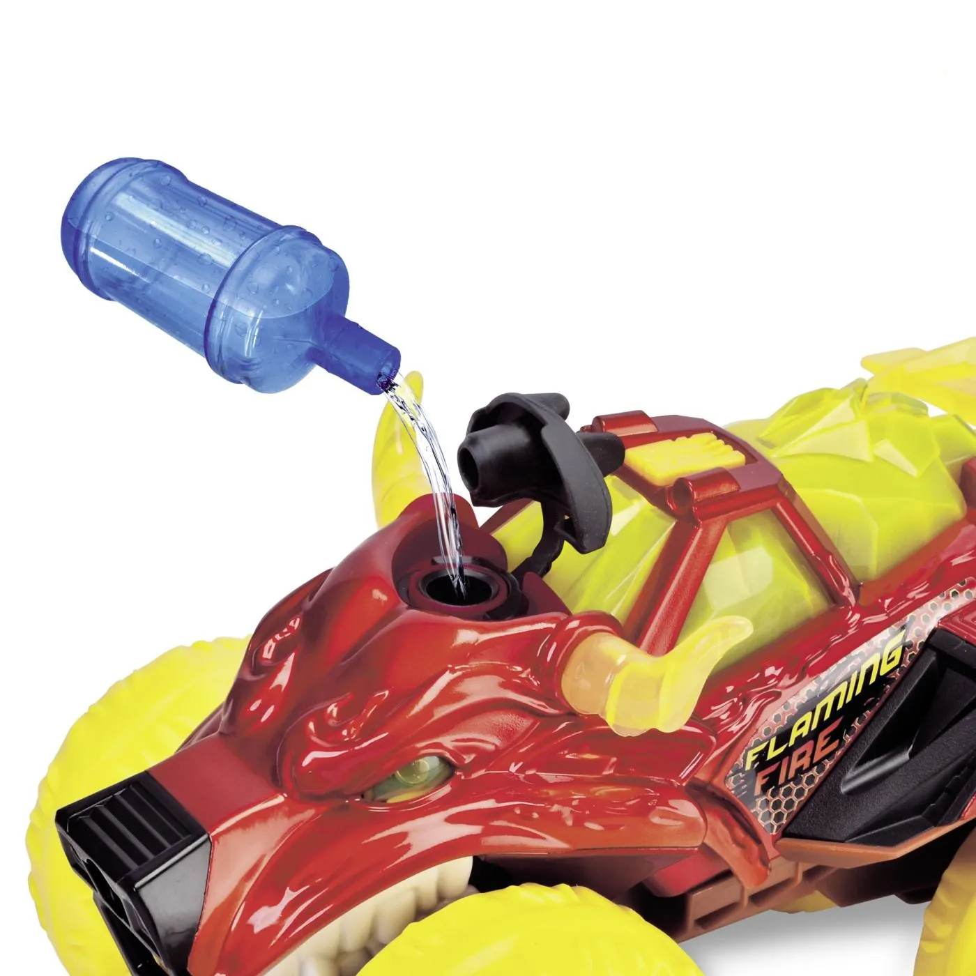 Masina de teren Flaming Fire Monster pentru copii de la 3 ani in sus, cu functie de abur si anvelope de cauciuc, masinuta de jucarie pentru copii cu roata libera, lumina si sunet, include baterii. Aventura de condus inflacarata. Masina de teren Flaming Fire Monster incalzeste cu adevarat baietii si fetele cu aspectul sau monstruos, designul cu flacari arzatoare si un efect real de abur. Suspensie si roti de cauciuc. Masinuta de jucarie rosie si galbena are caracteristici de inalta calitate si se rostogoleste fara efort datorita mecanismului sau de roata libera. Dimensiunea sa impresionanta o face ideala pentru copiii de la 3 ani in sus. Functie cu abur. Cand masinuta de jucarie este umpluta cu sticla de apa inclusa, camionul monstru emite fum fin de apa, simuland o suflare monstruoasa de foc. Cu lumini si sunete. Sunetele si iluminarea adecvata ale monstrului sporesc aspectul neinfricat, facand masina sa straluceasca si ochii sai sa sclipeasca periculos (baterii incluse).