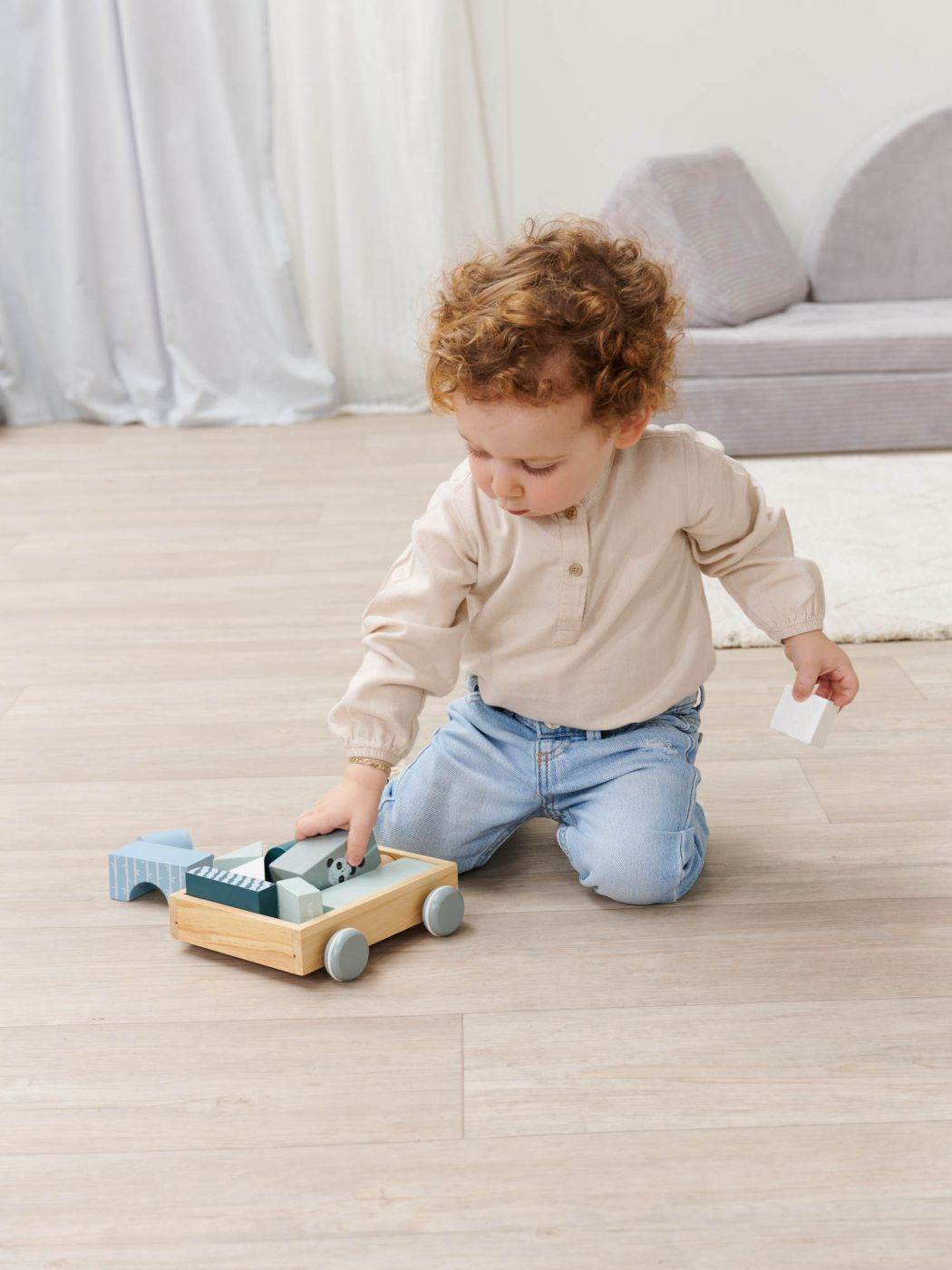 Remorca de constructii Eichhorn este o jucarie versatila si educativa, conceputa pentru a stimula creativitatea si indemanarea celor mici inca de la varsta de 1 an. Realizata din lemn de inalta calitate si avand un design modern, remorca vine echipata cu 11 blocuri de constructie in forme si culori variate, ideale pentru activitati de sortare, empilare si constructie. Aceste blocuri ii ajuta pe copii sa isi dezvolte motricitatea fina, coordonarea mana-ochi si gandirea creativa intr-un mod natural si distractiv. Remorca masoara 18 x 17,5 cm si este usor de tras datorita snurului integrat, fiind perfecta pentru joaca mobila prin casa. Rotile din lemn sunt prevazute cu jante din silicon, ceea ce le face silentioase, stabile si sigure pentru toate tipurile de pardoseala, fara a lasa urme. Cu un aspect atragator si elemente grafice delicate, inclusiv adorabilul panda caracteristici colectiei, remorca de constructii Eichhorn devine rapid o jucarie preferata, potrivita atat pentru joaca zilnica, cat si pentru dezvoltarea abilitatilor esentiale ale copilului.