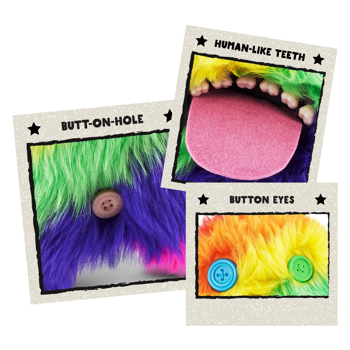 Monstrul: Oogah Boogah Inaltime: 23 cm Caracteristici: Dinti asemanatori celor umani, ochi inegali din nasturi, limba scoasa Blana: Lunga, multicolora (curcubeu) Viteza partului: Ametitoare Consistenta flegmei: Groasa Descriere: Sa sara intr-un vas cu ser pentru cresterea parului a fost cea mai buna idee pe care a avut-o aceasta creatura curajoasa. A fost camuflajul perfect pentru a scapa din laborator si a incepe sa faca ravagii in randul unei populatii complet nepregatite.