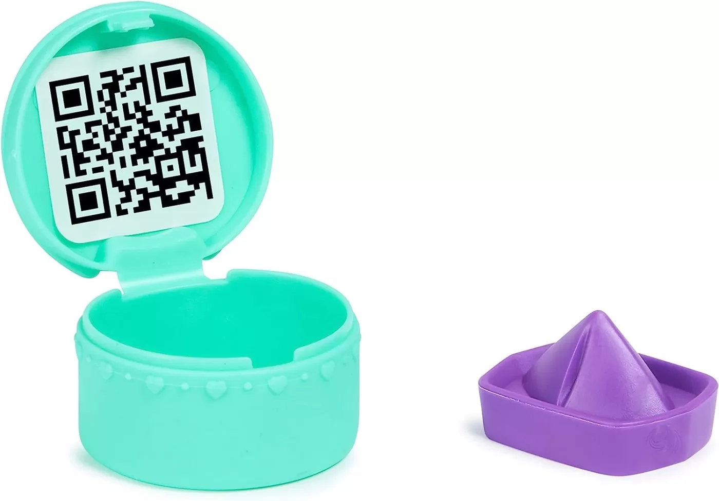 Contine o figurina de pisica Bebe Cutiuta si trei pisicute Hamster, in cartonul lor de oua, precum si o usa de dormitor dragalasa, cu serpentine curcubeu.