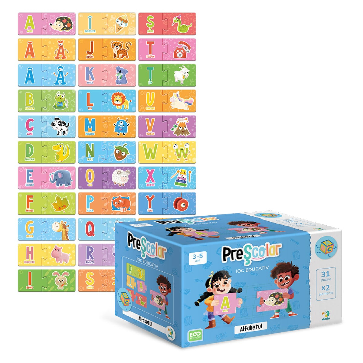 • Jocul educativ Alfabetul de la Dodo Toys este alegerea perfecta pentru micutii care se afla la inceput de drum in explorarea alfabetului.