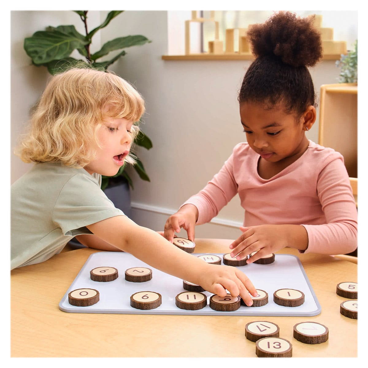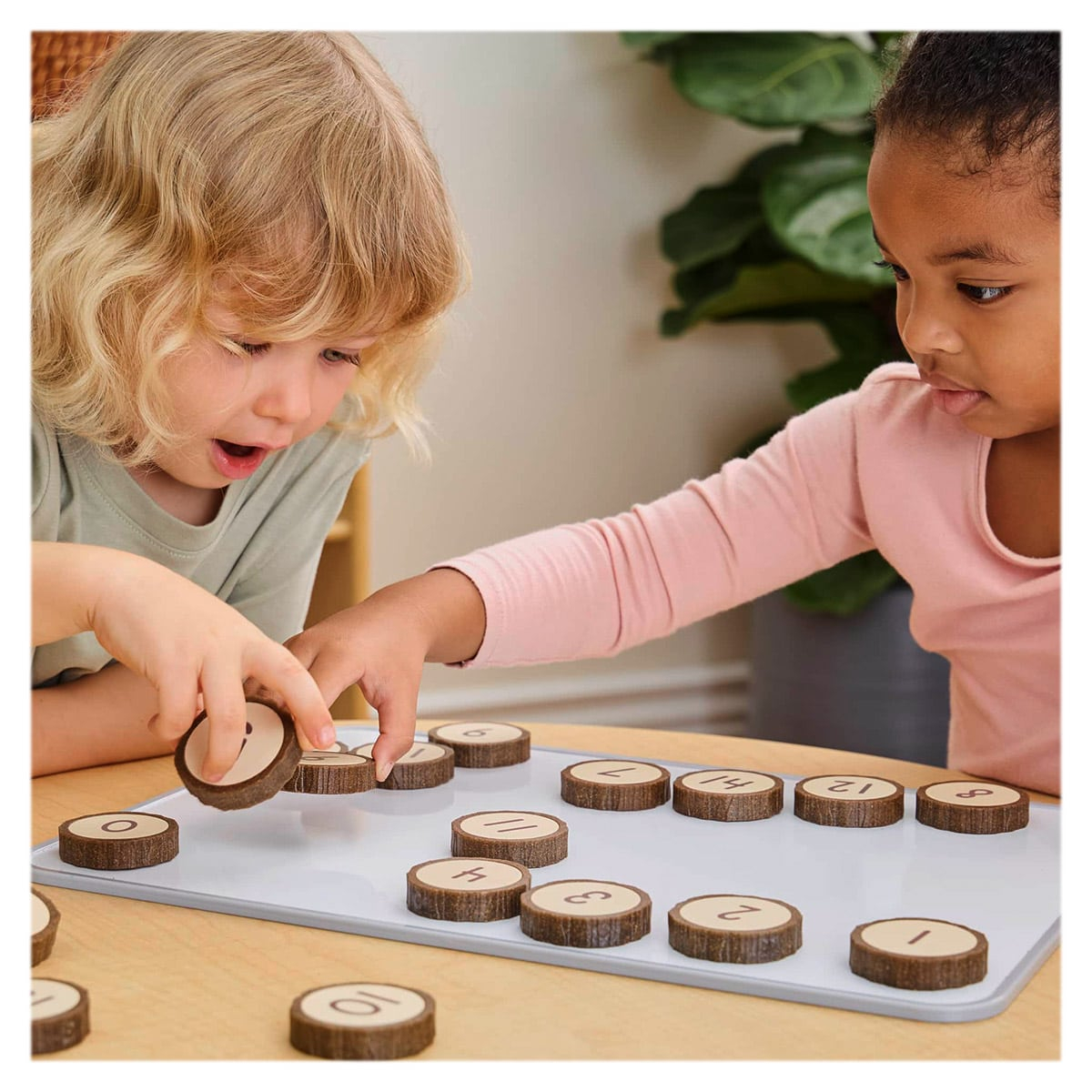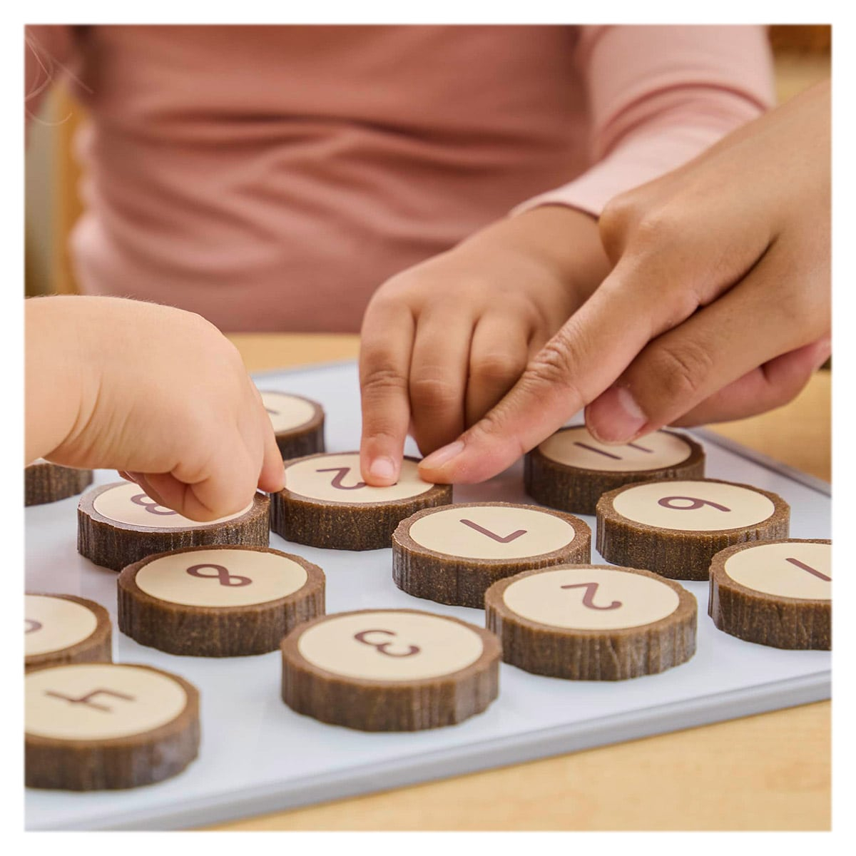 • Dezvolta abilitatile de numarare si recunoastere a numerelor ale micutilor cu acest set de jetoane magnetice cu aspect de biscuiti din lemn, inspirate din natura!