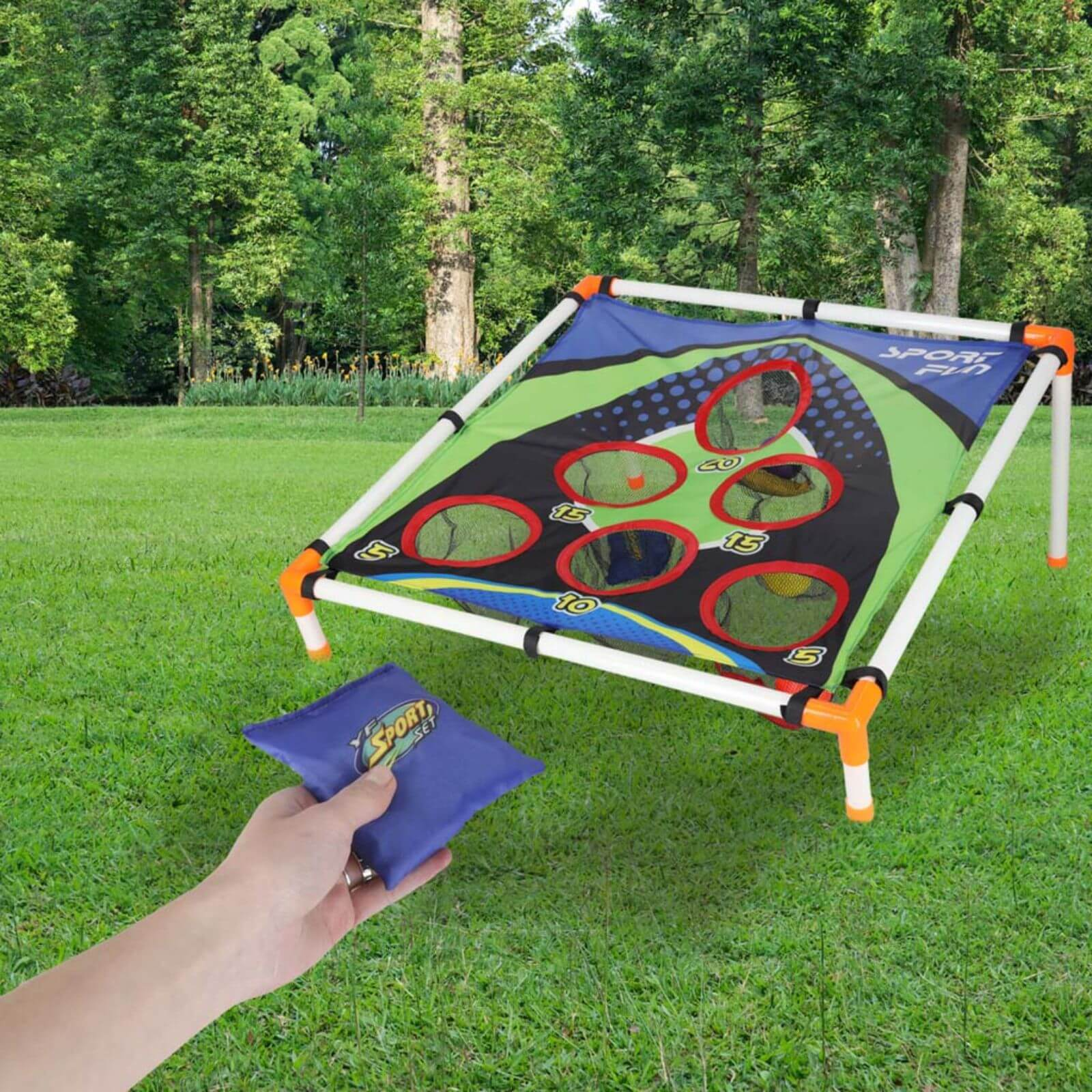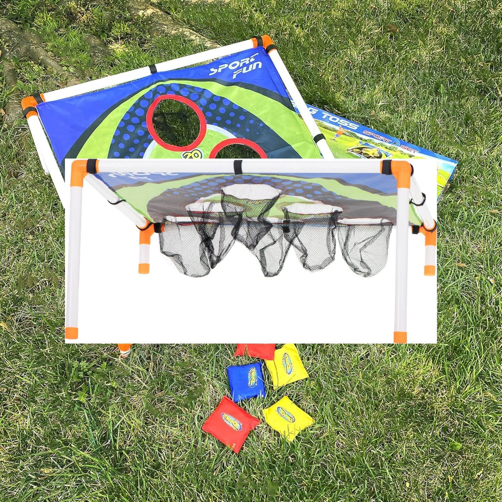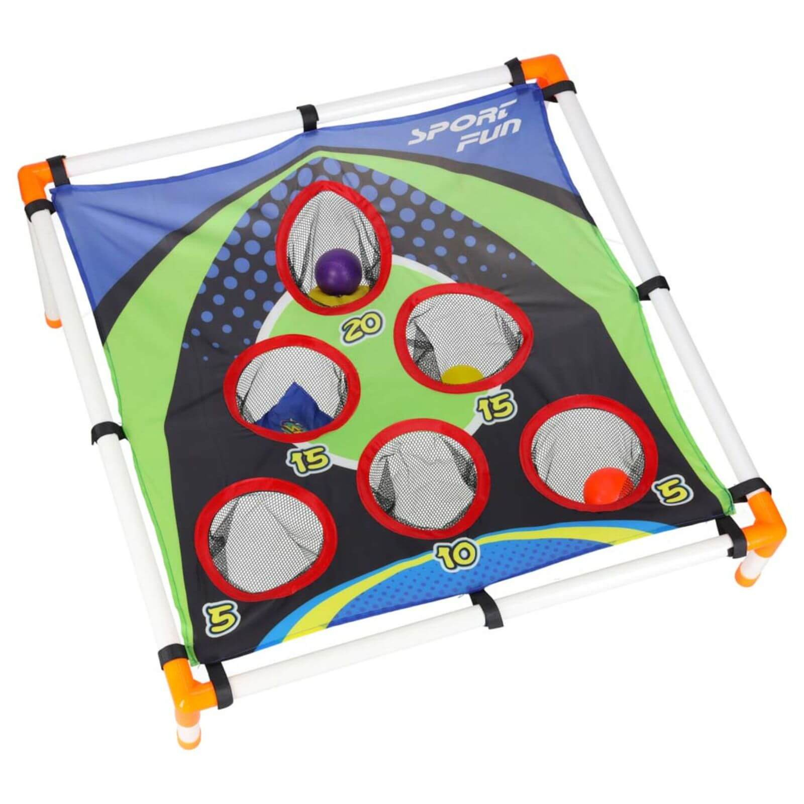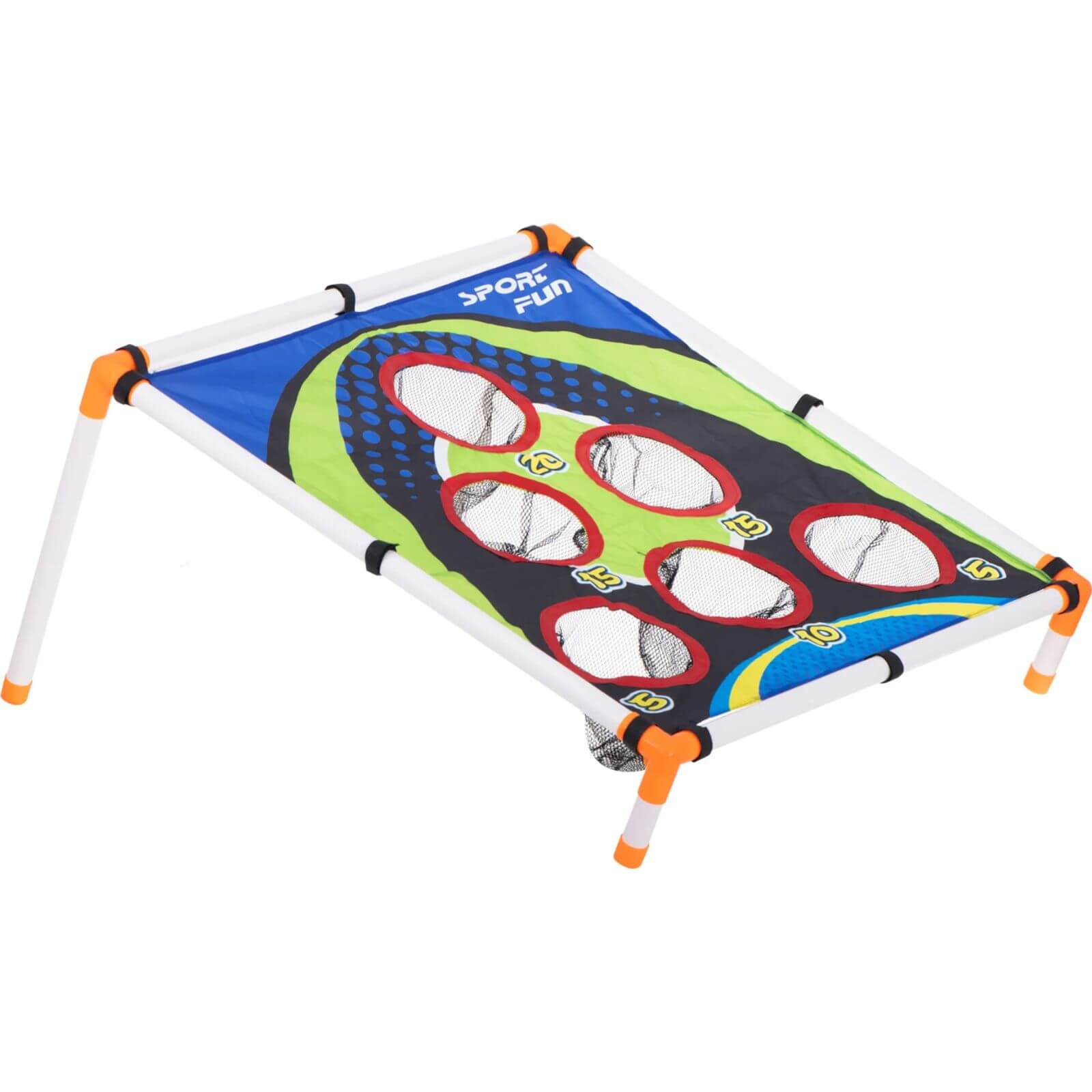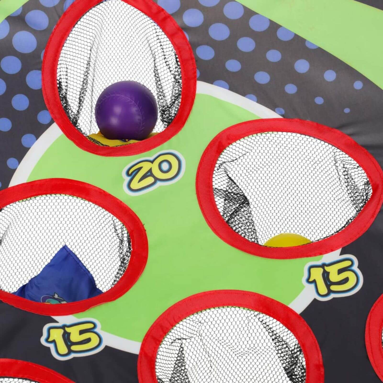 Acest produs este un joc de indemanare tip „toss game”, format dintr-o tinta cu punctaj si saculeti textili, destinat copiilor care isi dezvolta coordonarea mana-ochi, atentia si controlul miscarii. Jocul poate fi folosit atat in interior, cat si in exterior, individual sau in grup, fiind potrivit pentru joaca activa si competitiva. Jucatorul arunca saculetii sau mingile catre tinta, incercand sa nimereasca gaurile marcate cu punctaje diferite. Regulile pot fi adaptate in functie de varsta copilului sau de nivelul de dificultate dorit.