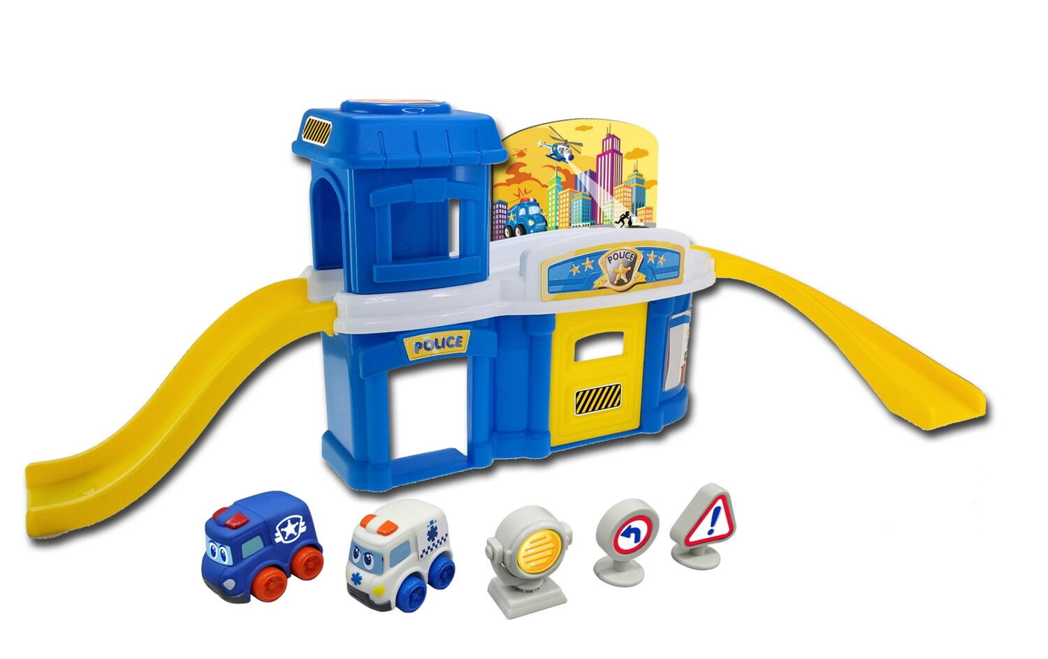 Patrunde in fascinanta lume a jocului de rol cu Prima mea sectie de politie, un set interactiv care ii introduce pe cei mici in universul constructiei si al povestilor pline de aventura_x000D_ Caracteristici:_x000D_ _x000D_ Acest joc este perfect pentru dezvoltarea creativitatii, indemanarii si a imaginatiei, oferind copiilor posibilitatea de a construi, explora si crea propriile scenarii politienesti_x000D_ Conceput special pentru mainile mici, jocul incurajeaza dezvoltarea creativitatii, a coordonarii ochi-mana si a jocului de rol_x000D_ Designul prietenos si culorile vii atrag imediat atentia celor mici, iar masinutele sunt prevazute cu roti care se misca usor, ideale pentru jocuri dinamice_x000D_ Ideal pentru jocuri de echipa sau independent_x000D_ Sustine invatarea prin joaca activa_x000D_ Toate piesele sunt realizate din plastic rezistent, sigur si durabil_x000D_ _x000D_ Setul include 11 piese de joc: 2 masinute, semne circulatie, rampe, piese pentru asamblat sectia de politie._x000D_ Dimensiune ambalaj: 41.6 x 7.9 x 27 cm_x000D_ Varsta recomandata: 12 luni +_x000D_ Atentie! Pentru siguranta copilului toate ambalajele, cum ar fi banda adeziva, folii plastic, legaturi din sarma si etichete si care nu sunt piese ale jocului trebuie aruncate. Necesita asamblare de catre un adult. Va rugam sa supravegheati copilul in timp ce se joaca/foloseste acest produs. Jucaria/produsul se poate curata cu o carpa usor umeda.