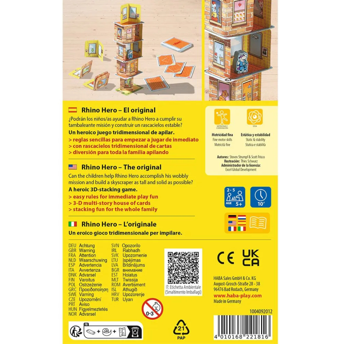 Joc de Echilibru Rhino Hero Haba, Constructie Zgarie-Nori 3D, 5 Ani Plus, 2-4 Jucatori