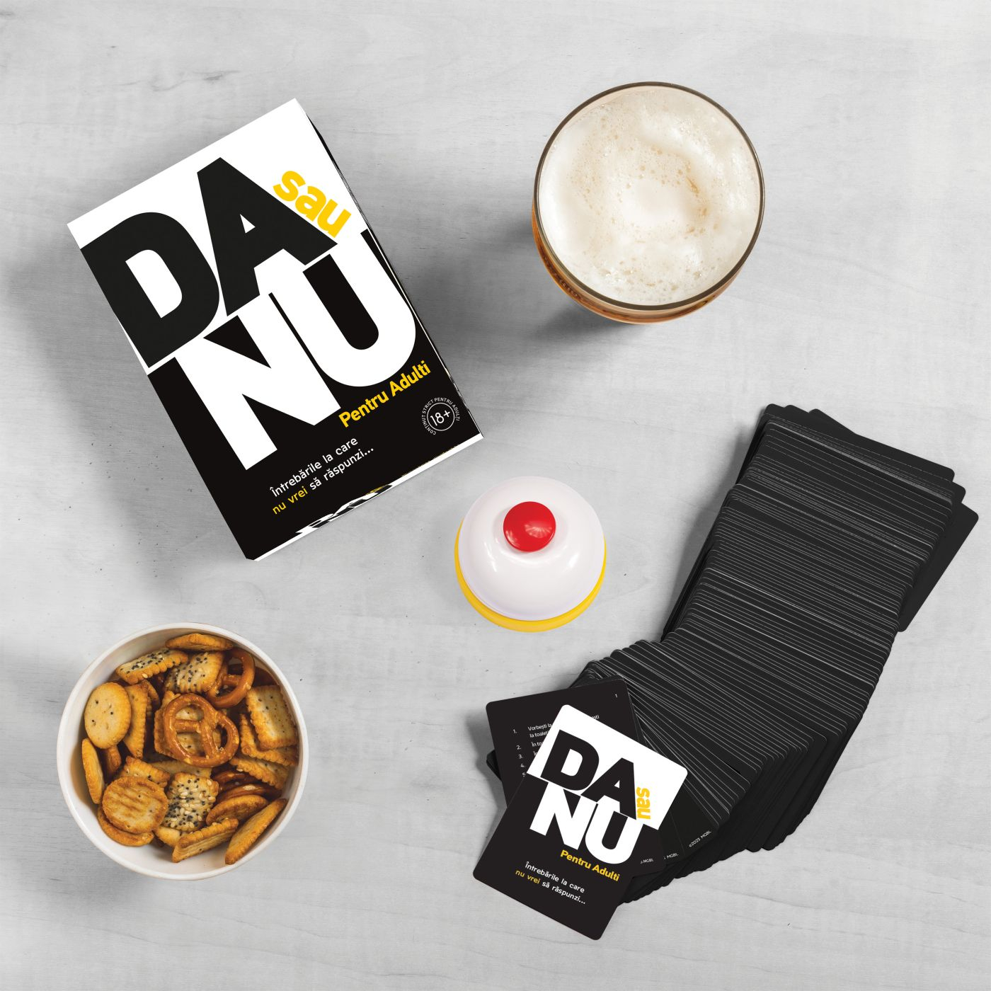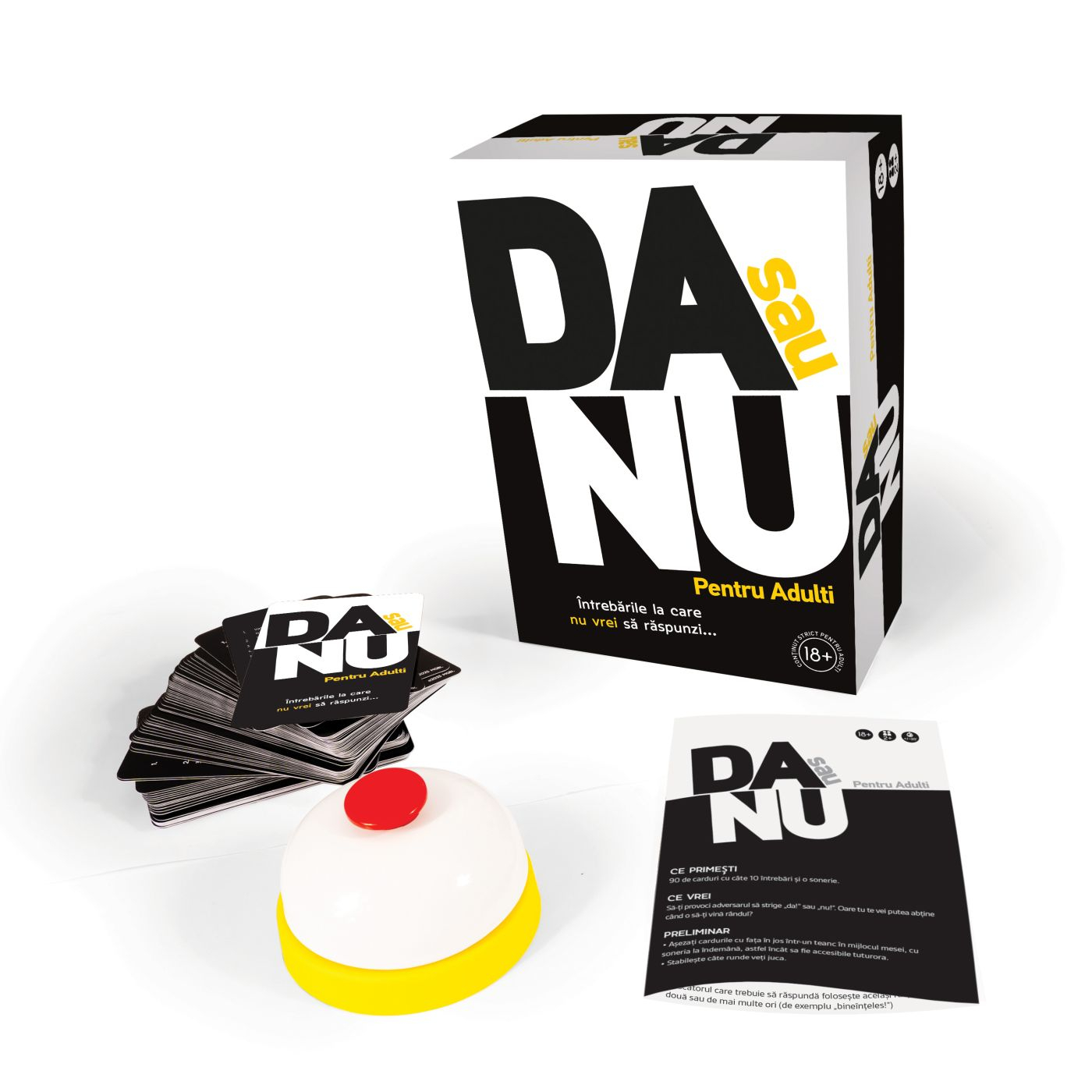 DA sau NU Pentru Adulti este jocul perfect pentru serile pline de rasete, provocari si intrebari incomode la care nu vei vrea sa raspunzi! Simplu, direct si amuzant, acest joc iti testeaza limitele sinceritatii si spiritul de aventura. Raspunde cu &bdquoda&rdquo sau &bdquonu&rdquo la intrebarile surprinzatoare si afla cat de bine iti cunosti prietenii atunci cand mastile cad si raspunsurile devin picante. Un joc social ideal pentru petreceri, seri intre adulti sau momente in care vrei sa adaugi un strop de umor si tensiune in atmosfera. Continut strict pentru adulti 18+ Intrebarile la care nu vrei sa raspunzi... dar trebuie!