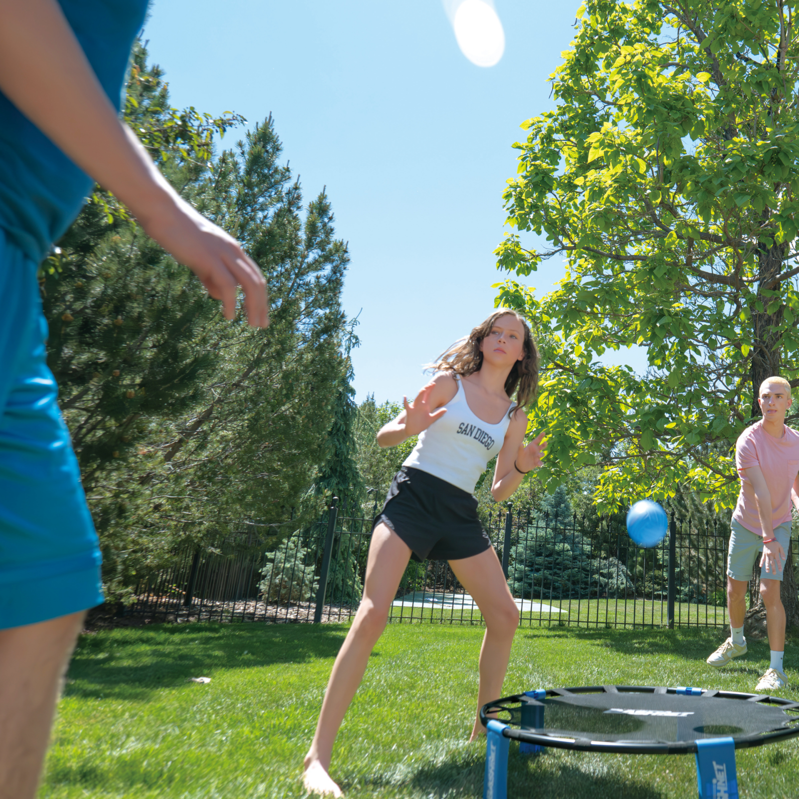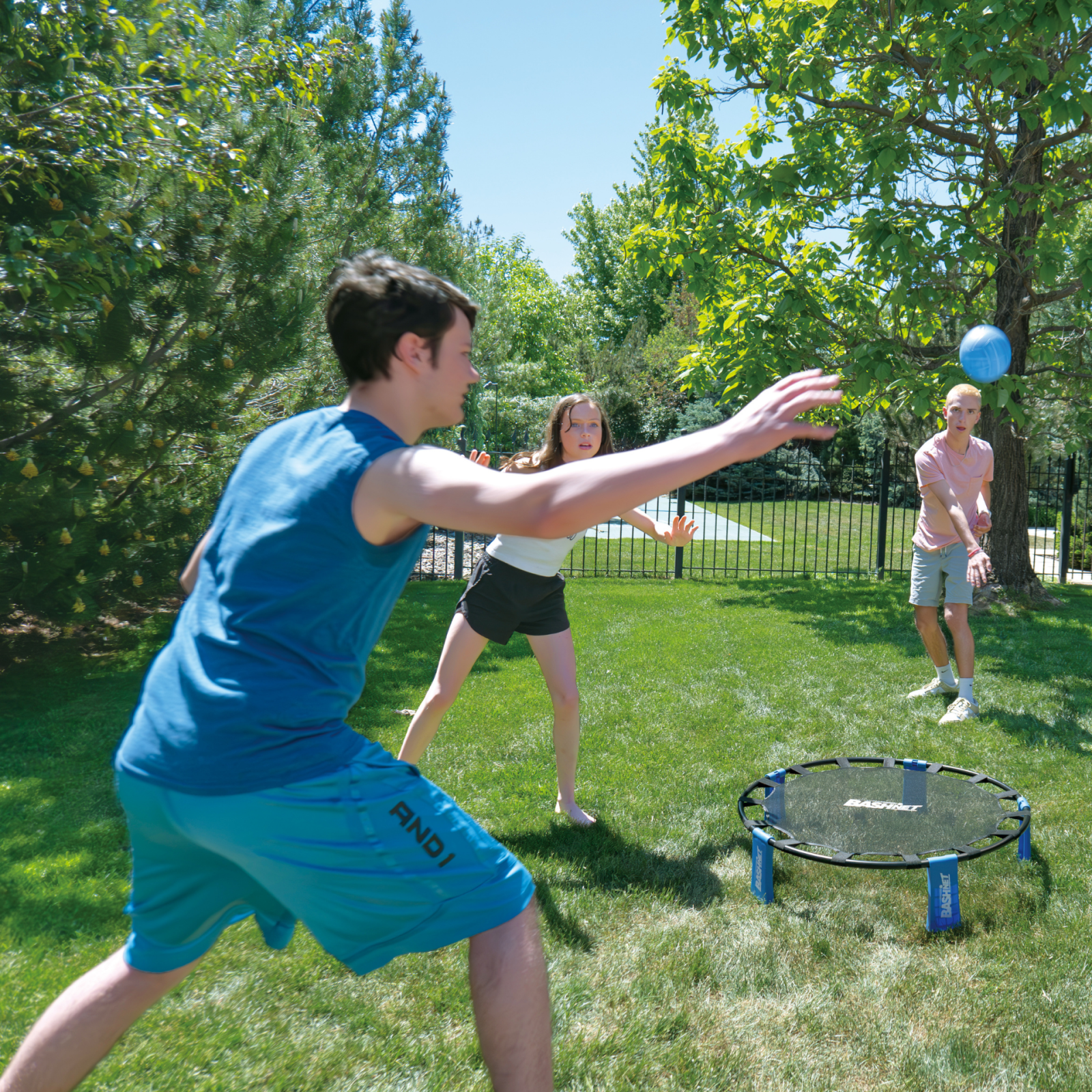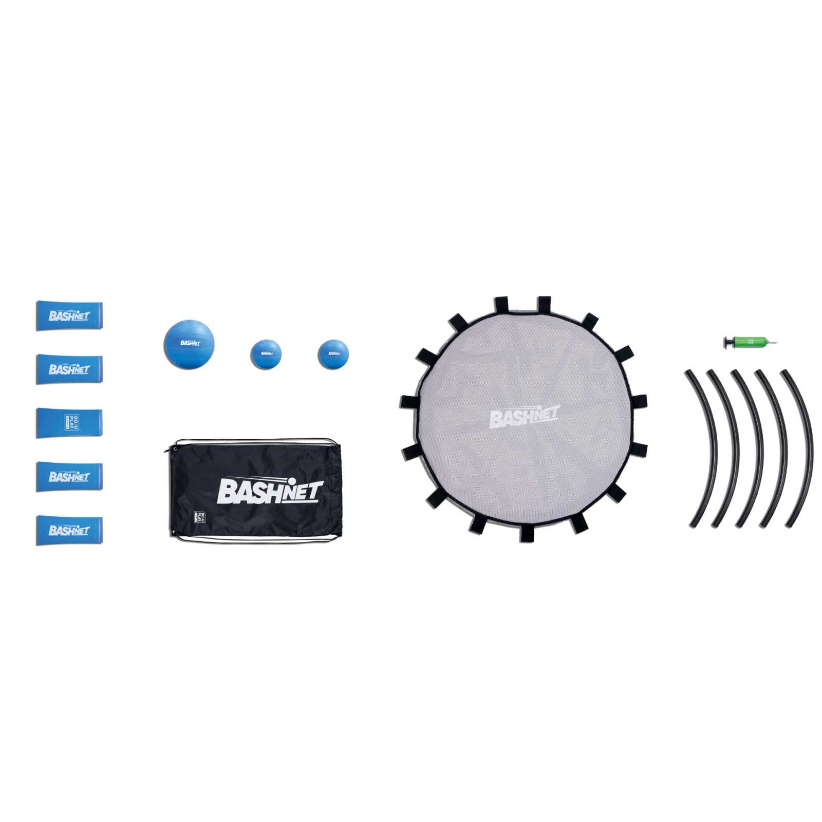 Bash-Net este un joc de volei 2 vs 2 in care fiecare echipa are 3 lovituri pentru a returna sau lovi mingea in plasa circulara, astfel incat cealalta echipa sa nu o poata intoarce._x000D_ Jucatorii se pot misca sau lovi in orice directie dupa serviciu. Plasa este rotunda si nu are limite, asa ca jocul poate fi jucat pe orice suprafata spatioasa. Jucatorii trebuie sa se miste rapid si eficient pentru a evita sa fie loviti de adversari!_x000D_ Plasa noastra premium permite bilelor sa sara cu 25% mai mult decat jocurile similare cu plasa. Designul plasei pastreaza, de asemenea, o margine curata, care previne sariturile si deviatiile incomode._x000D_ Jucatorii mai tineri pot incepe cu minge de antrenament de dimensiuni mai mari in timp ce invata jocul inainte de a trece la mingile de dimensiuni mai mici de competitie._x000D_ Acest kit contine 5 picioare pentru toate suprafetele – pentru terenuri cu iarba, nisip sau lemn, 1 plasa superioara de inalta tensiune, 2 mingi de competitie, 1 minge de antrenament mai mare si 1 geanta mare de transport._x000D_ _x000D_ Dimensiuni: L: 90, l: 90, H: 20 cm,_x000D_ Dimensiuni cutie: L: 51, l: 8, H: 26.5 cm.