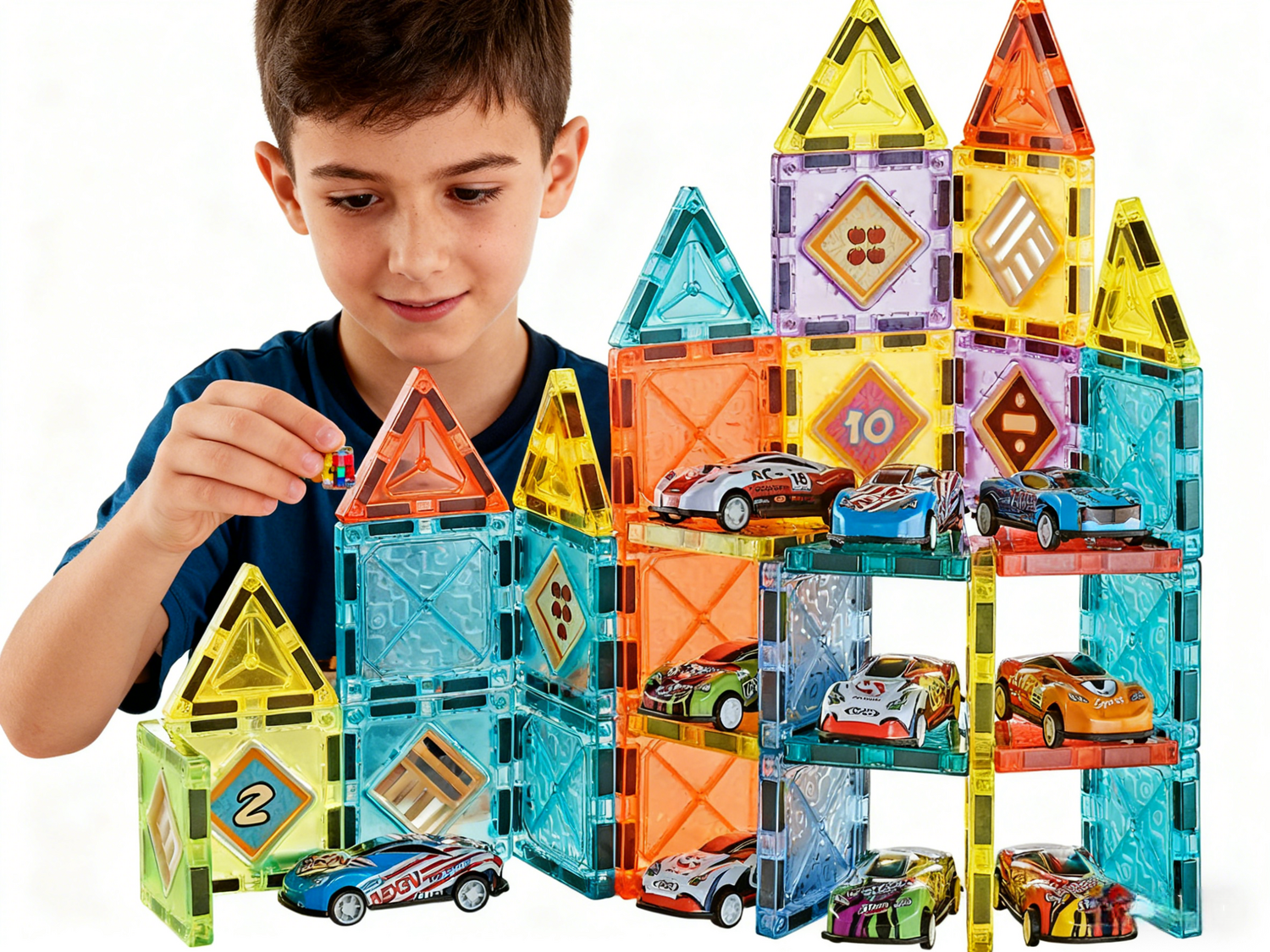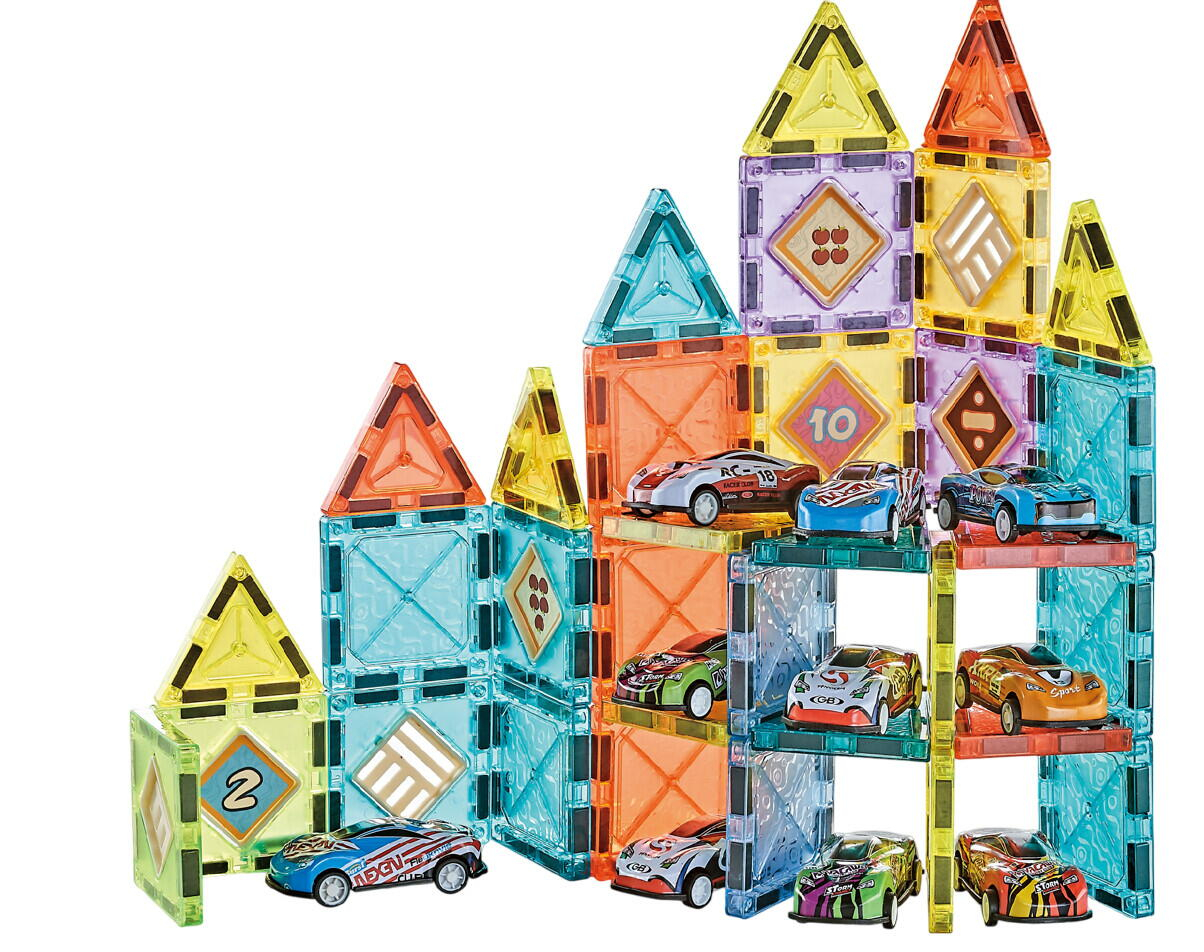 Acest set magnetic ii provoaca pe cei mici sa construiasca o parcare 3D pentru masinutele incluse, folosindu-si imaginatia, indemanarea si gandirea spatiala._x000D_ Caracteristici:_x000D_ _x000D_ 59 de piese in total: 49 piese de constructie din plastic durabil cu magnet integrat si 10 masinute simpatice, usor de manevrat de catre copii_x000D_ piesele magnetice se imbina usor si sigur, permitand constructii stabile in 2D si 3D_x000D_ copiii pot crea rampe, etaje, parcari sau trasee pentru masinute – totul dupa propria imaginatie_x000D_ este ideal pentru jocuri de rol, dar si pentru dezvoltarea logicii si coordonarii_x000D_ dezvolta gandirea logica, coordonarea mana-ochi, creativitatea si abilitatile motorii fine_x000D_ ideal pentru joaca individuala sau in grup, acasa, la gradinita sau afterschool_x000D_ culori vii si design robust, perfect pentru ore intregi de distractie educativa_x000D_ fabricat din plastic durabil cu magnet integrat, rezistent si usor de manevrat_x000D_ _x000D_ Setul include:_x000D_ _x000D_ 6 triunghiuri isoscele magnetice_x000D_ 7 triunghiuri echilaterale magnetice_x000D_ 12 patrate magnetice pline_x000D_ 8 patrate cu decupaj_x000D_ 16 piese de plastic pentru abtibilduri_x000D_ 10 masinute_x000D_ _x000D_ Dimensiuni: 30 Ñ… 6 Ñ… 21.5 cm_x000D_ Varsta recomandata: 3 ani+_x000D_ Atentie! Contine magneti. Inghitirea/inhalarea poate provoca accidente grave sau fatale. Consultati urgent medicul. Pericol de sufocare: Contine piese mici. Nerecomandat sub 3 ani. Indepartati ambalajele inainte de utilizare. Supravegheati copilul in timpul utilizarii. Pastrati instructiunile. Feriti de foc, caldura si umiditate. Produsul poate diferi de fotografie, specificatii sau ilustratii.