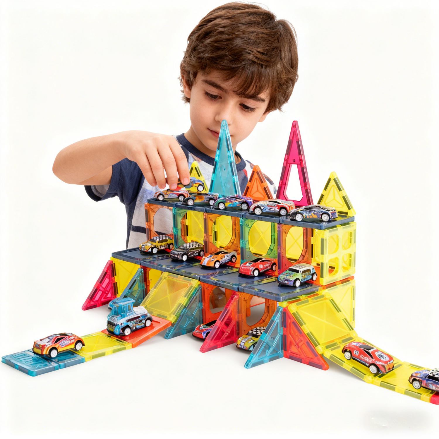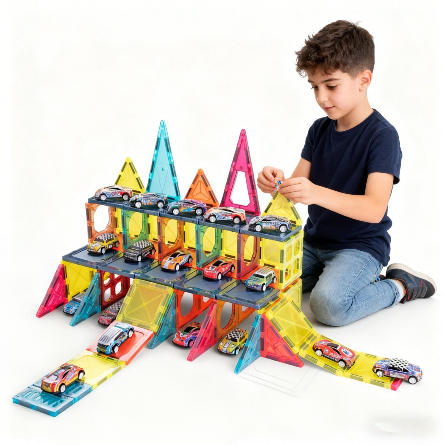 Un joc creativ si educativ care transforma joaca intr-o aventura logica plina de distractie!_x000D_ Caracteristici:_x000D_ _x000D_ acest set magnetic ii provoaca pe cei mici sa construiasca o parcare 3D pentru masinutele incluse, folosindu-si imaginatia, indemanarea si gandirea spatiala. Este ideal pentru jocuri de rol, dar si pentru dezvoltarea logicii si coordonarii_x000D_ 94 de piese in total: 74 piese de constructie din plastic durabil cu magnet integrat si 20 masinute simpatice, usor de manevrat de catre copii_x000D_ piesele magnetice se imbina usor si sigur, permitand constructii stabile in 2D si 3D_x000D_ copiii pot crea rampe, etaje, parcari sau trasee pentru masinute – totul dupa propria imaginatie_x000D_ dezvolta gandirea logica, coordonarea mana-ochi, creativitatea si abilitatile motorii fine_x000D_ ideal pentru joaca individuala sau in grup, acasa, la gradinita sau afterschool_x000D_ culori vii si design robust, perfect pentru ore intregi de distractie educativa_x000D_ fabricat din plastic durabil cu magnet integrat, rezistent si usor de manevrat_x000D_ _x000D_ Dimensiuni: 24 Ñ… 17 Ñ… 19.2 cm_x000D_ Setul include : _x000D_ _x000D_ 35 patrate pline_x000D_ 10 patrate cu decupaj hexagonal_x000D_ 5 patrate tip fereastra_x000D_ 8 triunghiuei echilaterale pline_x000D_ 2 triunghiuri isoscel pline_x000D_ 2 triunghiuri isoscel rama_x000D_ 8 triunghiuri dreptungice_x000D_ 4 dreptunghiuri pline_x000D_ 20 masinute_x000D_ _x000D_ Varsta recomandata: 3 ani+_x000D_ Atentie! Contine magneti. Inghitirea/inhalarea poate provoca accidente grave sau fatale. Consultati urgent medicul. Pericol de sufocare: Contine piese mici. Nerecomandat sub 3 ani. Indepartati ambalajele inainte de utilizare. Supravegheati copilul in timpul utilizarii. Pastrati instructiunile. Feriti de foc, caldura si umiditate. Produsul poate diferi de fotografie, specificatii sau ilustratii.