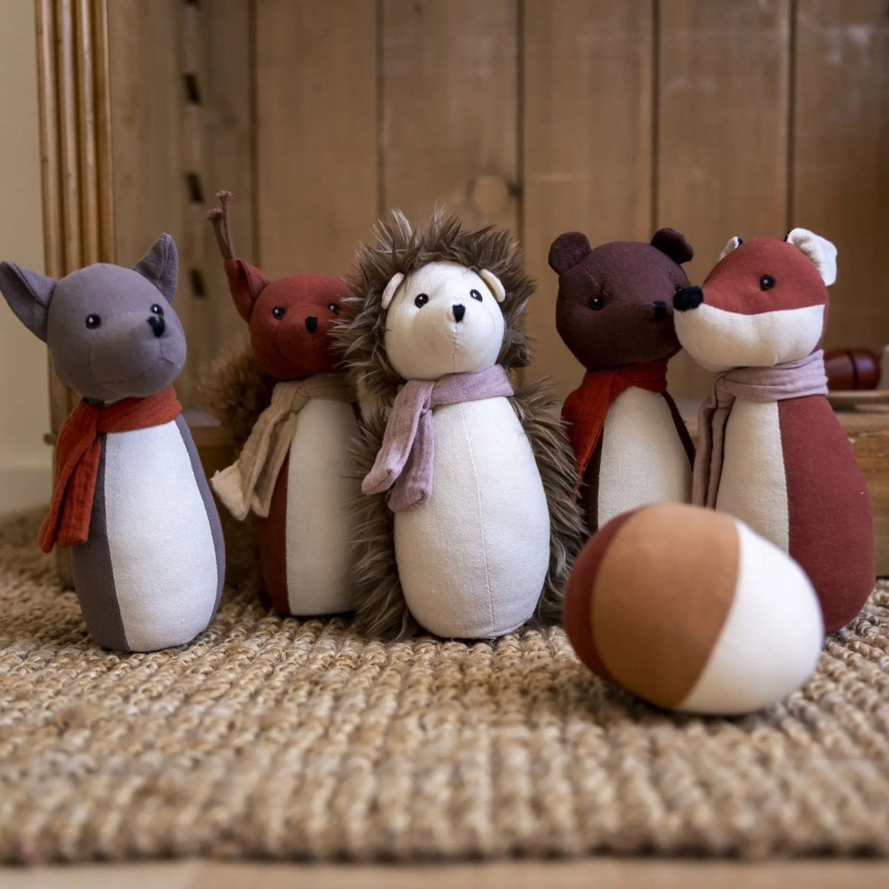 Joc popice Prieteni Jocul de bowling "Friends" din material textil moale prezinta 5 personaje din indragita familie Friends: Porc, Pisica, Caine, Iepure, Șoarece, adaugand distractie senzoriala pe masura ce cel mic rostogoleste mingea si isi rasturna prietenii blanosi. Pentru dezvoltarea coordonarii si a abilitatilor motorii insotite de chicoteli nesfarsite - jocul Bowling friends poate fi un cadou care creste odata cu copilul.Popice moi cu fete prietenoase, confectionate din textil, placute la atingere si usor de curatat, sunt ideale pentru joaca celui mic. Fiecare piesa (5 popice si mingea) au in interior un clopotel cu sunet delicat. Mai intai copilul va fi interesat de sunetul placut al fiecarei piese. Mai tarziu, va incerca sa rastoarne popicele cu mingea. Se spala in masina la 30° C. Varsta recomandata: + 0 luni. Confectionate din bumbac si poliester cu detalii brodate. Conform reglementarilor EN71&ASTM. AVERTISMENT: Se recomanda supravegherea copilului de catre un adult in timpul jocului. Cititi cu atentie eticheta produsului. Producator: Egmont Toys, Belgia.