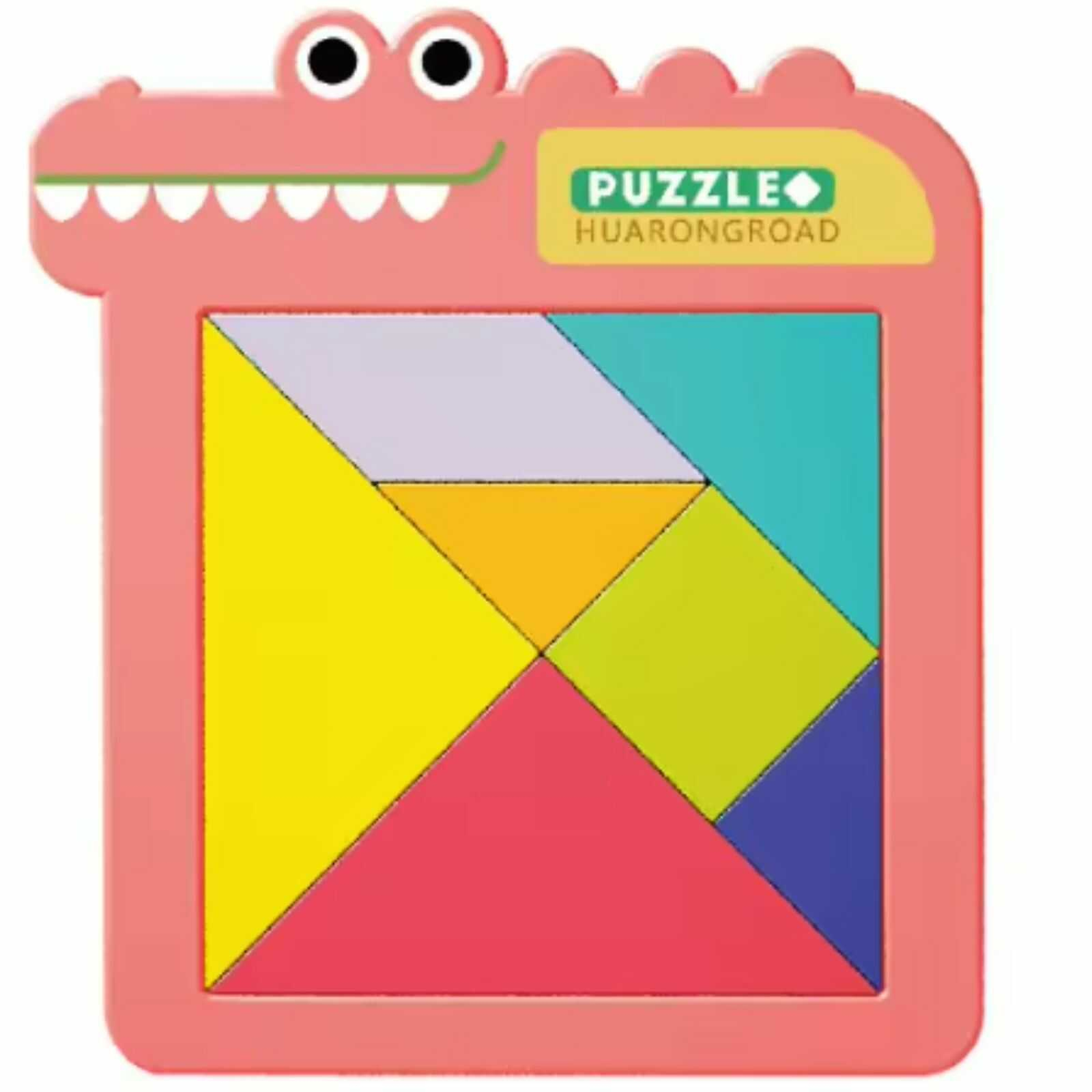 Micostore Joc Tangram, 7 piese, in forma de crocodil, puzzle educativ din plastic, 14.7 x 16.2 x 1.3 cm, 2 culori