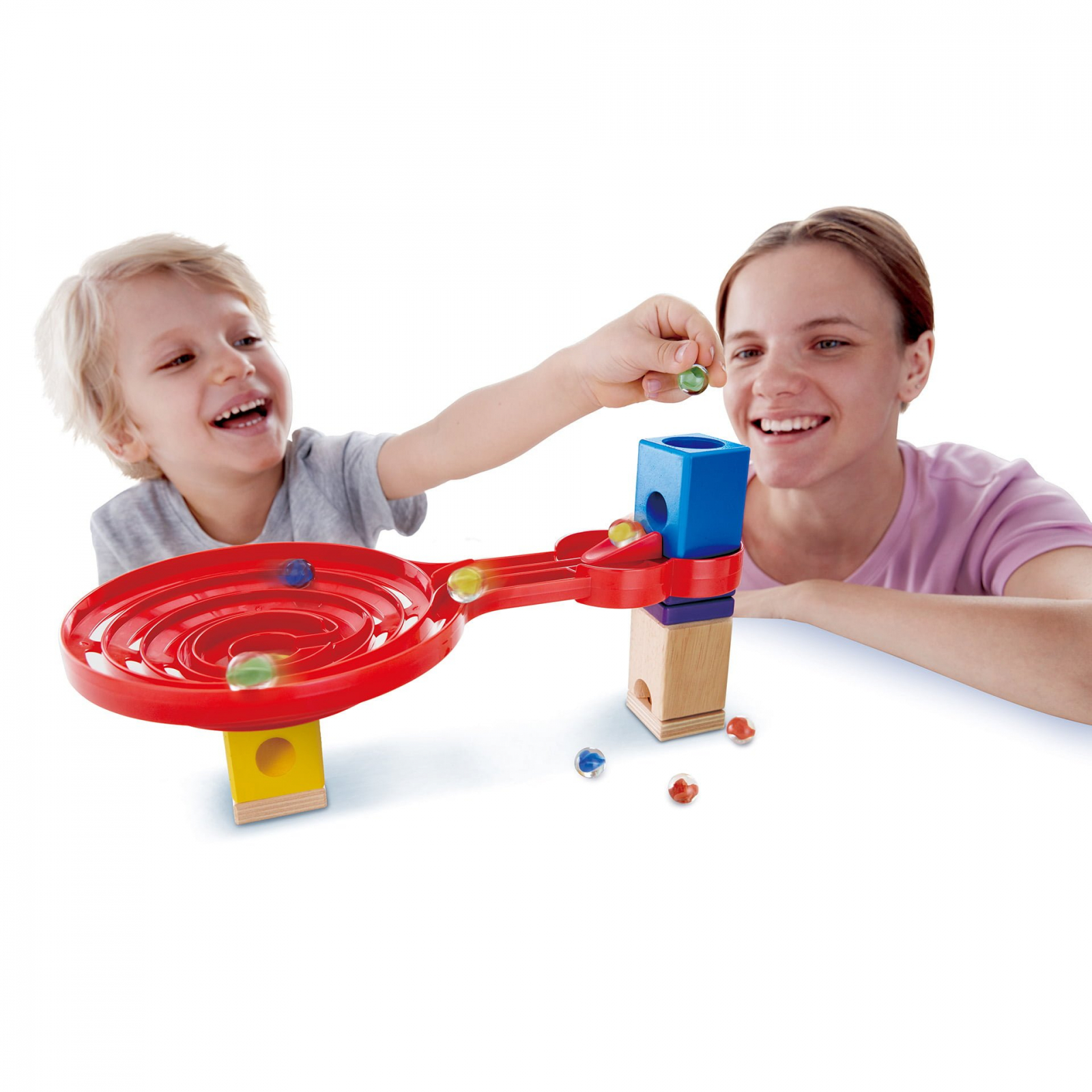 Hape Jucarie copii Quadrilla - circuit cu bile - Rasuceste spirala cu doua fete (18 piese), copii varsta 4 ani+,6 ani+,8 ani+