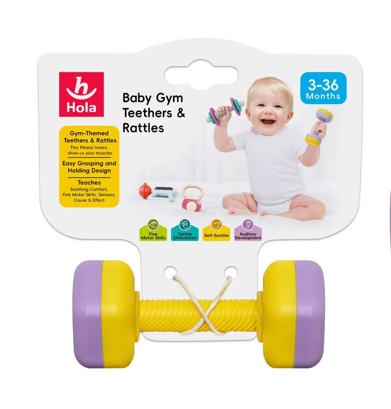Jucarie dentitie in forma de gantera. Acesta adorabila zornaitoare stimuleaza abilitatile motorii fine, descoperirea senzoriala si ii ajuta pe copii sa inteleaga cauza si efectul. Este usor de tinut in mana si de manevrat. Usor de dezinfectat. Aceasta jucarie de dentitie pentru bebelusi va provoca o adevarata incantare oricarui bebelus. Este colorata, usor de prins, zornaie si, fara indoiala, va atrage privirile mici si curioase. Jucaria de dentitie este confortabila pentru orice baiat sau fata in crestere, cu varsta de peste 3 luni. Este conceput cu grija si atentie pentru mainile copiilor. Forma si caracteristicile sale atractive permit ore intregi de joaca si distractie. Toti parintii stiu ca cei mici au un interes special pentru jucarii inca de la o varsta frageda. Copilul va explora jucaria plin de curiozitate, o va agita energic, iar acest lucru va provoca zambete, bucurie si distractie.