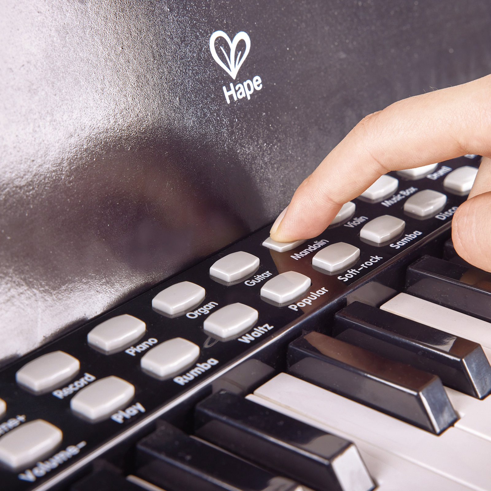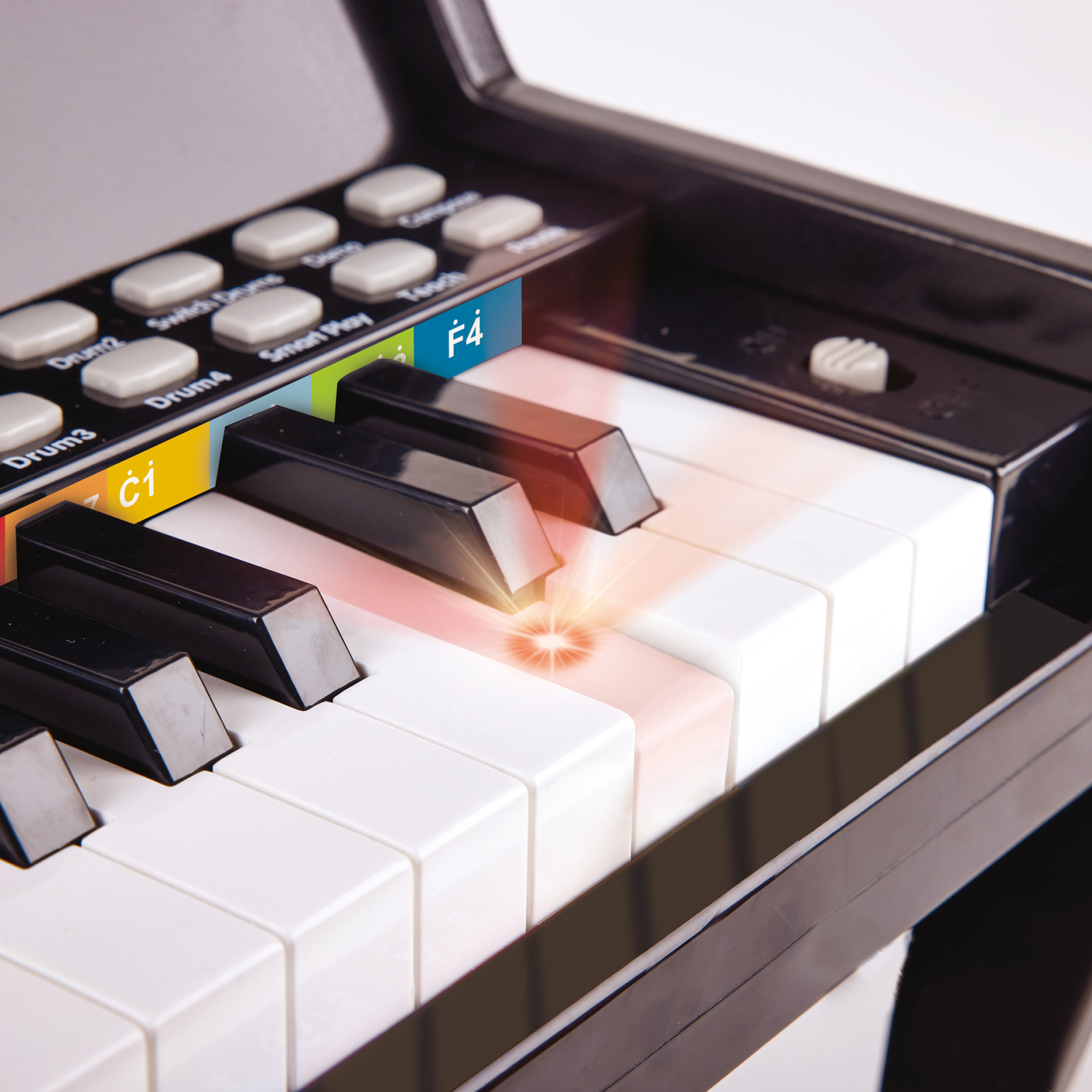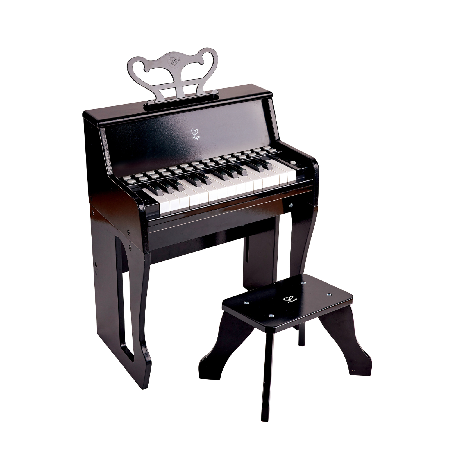 Hape Jucarie din lemn copii - Pian negru cu scaun - invat sa cant cu lumini, copii varsta 3 ani+,6 ani+