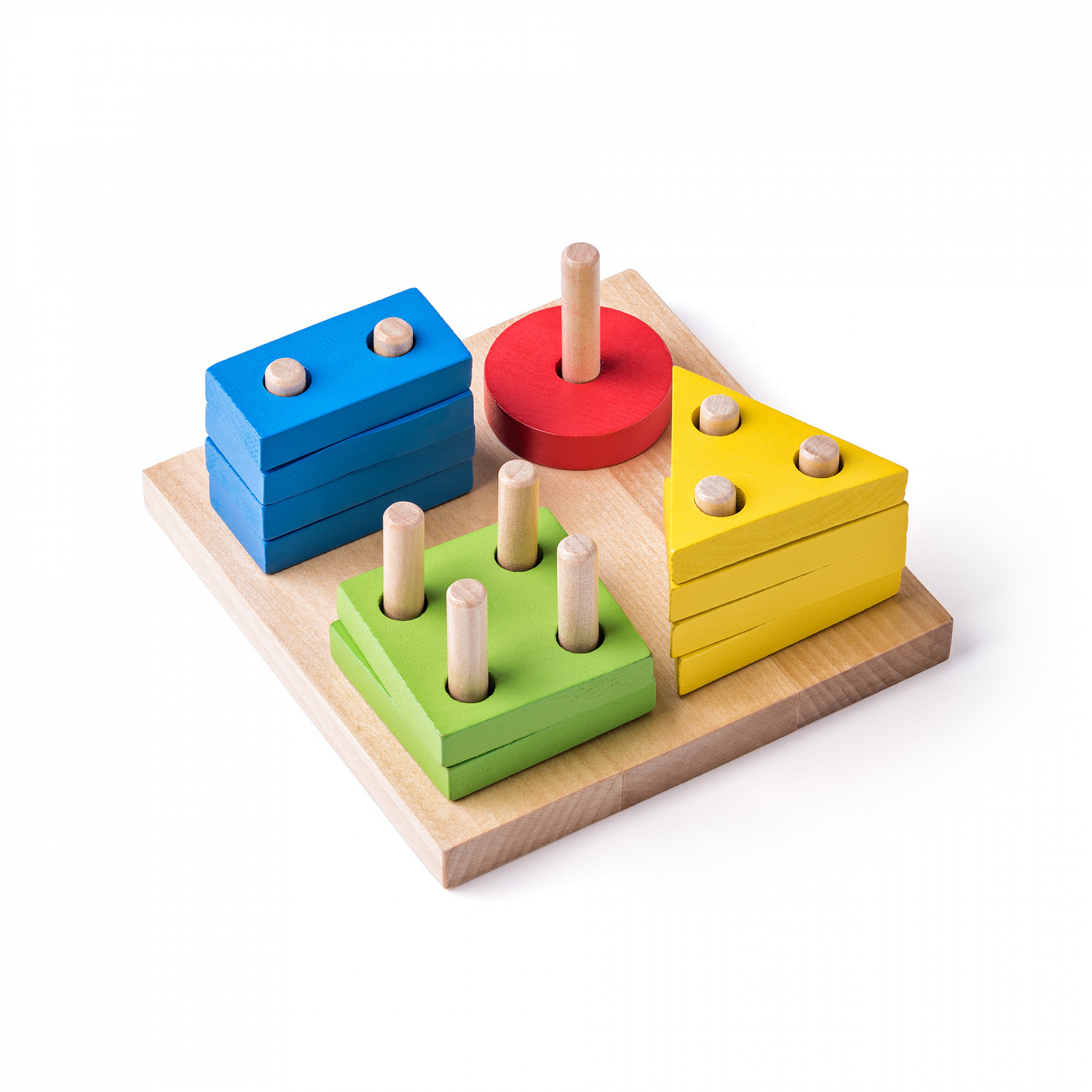 Jucarie din lemn - Tabla de sortat si stivuit forme, copii varsta 2 ani+