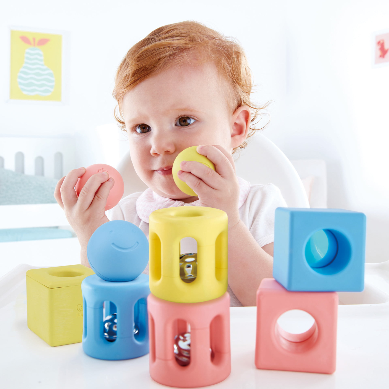 Hape Jucarie din orez - Zdranganitoare trio cu forme geometrice, copii varsta 0 luni+