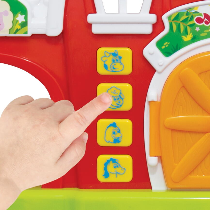 Bine ai venit in lumea fermecata a fermei, unde fiecare sunet, miscare si personaj prinde viata!_x000D_ Caracteristici:_x000D_ _x000D_ Aceasta ferma animata ii ajuta pe cei mici sa descopere sunetele animalelor, sa isi creeze propriile povesti si sa exploreze mediul rural intr-un mod interactiv si realist_x000D_ Ferma interactiva este prevazuta cu sunete amuzante ale animalelor (vaca, cal, porc, oaie etc.), care se activeaza prin apasarea sau plasarea figurinelor_x000D_ Figurinele cu animalute de la ferma sunt usor de recunoscut si de manevrat, ideale pentru jocuri de potrivire si imaginatie_x000D_ Copiii pot crea o intreaga zi la ferma:hranirea animalelor, transportul cu tractorul, ingrijirea vietuitoarelor_x000D_ Stimuleaza imaginatia si creativitatea prin jocuri de rol tematice_x000D_ Ajuta la recunoasterea sunetelor animalelor de ferma_x000D_ Functioneaza cu 2 baterii AA (incluse)_x000D_ Toate componentele sunt fabricate din plastic rezistent si non-toxic, cu margini rotunjite pentru siguranta celor mici in timpul jocului_x000D_ _x000D_ Setul include:_x000D_ _x000D_ ferma_x000D_ figurinele cu animalute_x000D_ tractor cu remorca_x000D_ figurina fermier_x000D_ balot fan_x000D_ gardulete_x000D_ _x000D_ Dimensiune ambalaj: 60.3 x 38 x 10.5 cm_x000D_ Varsta recomandata: 12 luni+_x000D_ Atentie! Nu lasati ambalajele jucariilor/produselor la indemana copiilor. Indepartati orice ambalaj al jucariei/produsului inainte de a da jucaria/produsul copilului. Va rugam sa supravegheati copilul in timp ce se joaca/foloseste acest produs. Pastrati instructiunile si etichetele pentru referinte viitoare. Pastrati jucaria/produsul departe de foc, feriti jucaria/produsul de temperaturi ridicate si umiditate. Jucaria/produsul se poate curata cu o carpa usor umeda. Stergeti si uscati la aer imediat dupa curatare. Aceasta jucarie produce lumini intermitente care pot declansa epilepsie la persoanele sensibile._x000D_ _x000D_ _x000D_ _x000D_  _x000D_ Precautii: Inlocuirea bateriilor: slabiti suruburile depe capacul compartimentului pentru baterii folosind o surubelnita si scoateti bateriile consumate; introduceti noile baterii conform indicatiilor, puneti capacul compartimentului pentru baterii la loc si strangeti din nou suruburile. Bateriile incluse in jucarie la achizitionare sunt furnizate doar pentru demonstratie la punctul de vanzare. Tineti bateriile si uneltele departe de accesul copiilor. Scoateti bateriile descarcate din jucarie. Se recomanda utilizarea bateriilor alcaline. Folositi doar tipul de baterii recomandat pentru functionarea produsului. Nu amestecati baterii vechi cu baterii noi. Nu amestecati baterii alcaline, standard (carbon-zinc) sau reincarcabile (nichel-cadmiu). Bateriile trebuie introduse doar de catre un adult. Scoateti bateriile atunci cand jucaria nu este folosita. Introduceti corect bateriile conform indicatiilor, asigurandu-va ca fiecare pol este plasat in partea corecta. Nu aruncati bateriile consumate in foc, ci depozitati-le la un punct de colectare adecvat. Nu scurtcircuitati bornele bateriilor. Bateriile reincarcabile trebuie reincarcate doar de catre un adult. Scoateti bateriile reincarcabile din jucarie inainte de reincarcare (daca sunt detasabile). Bateriile nereincarcabile nu trebuie reincarcate. Va rugam sa pastrati aceste informatii pentru referinta. Va rugam sa pastrati informatiile de pe ambalaj pentru orice corespondenta ulterioara. Sub rezerva de modificari tehnice si modificari de culoare._x000D_ _x000D_ _x000D_ _x000D_ _x000D_  _x000D_ _x000D_
