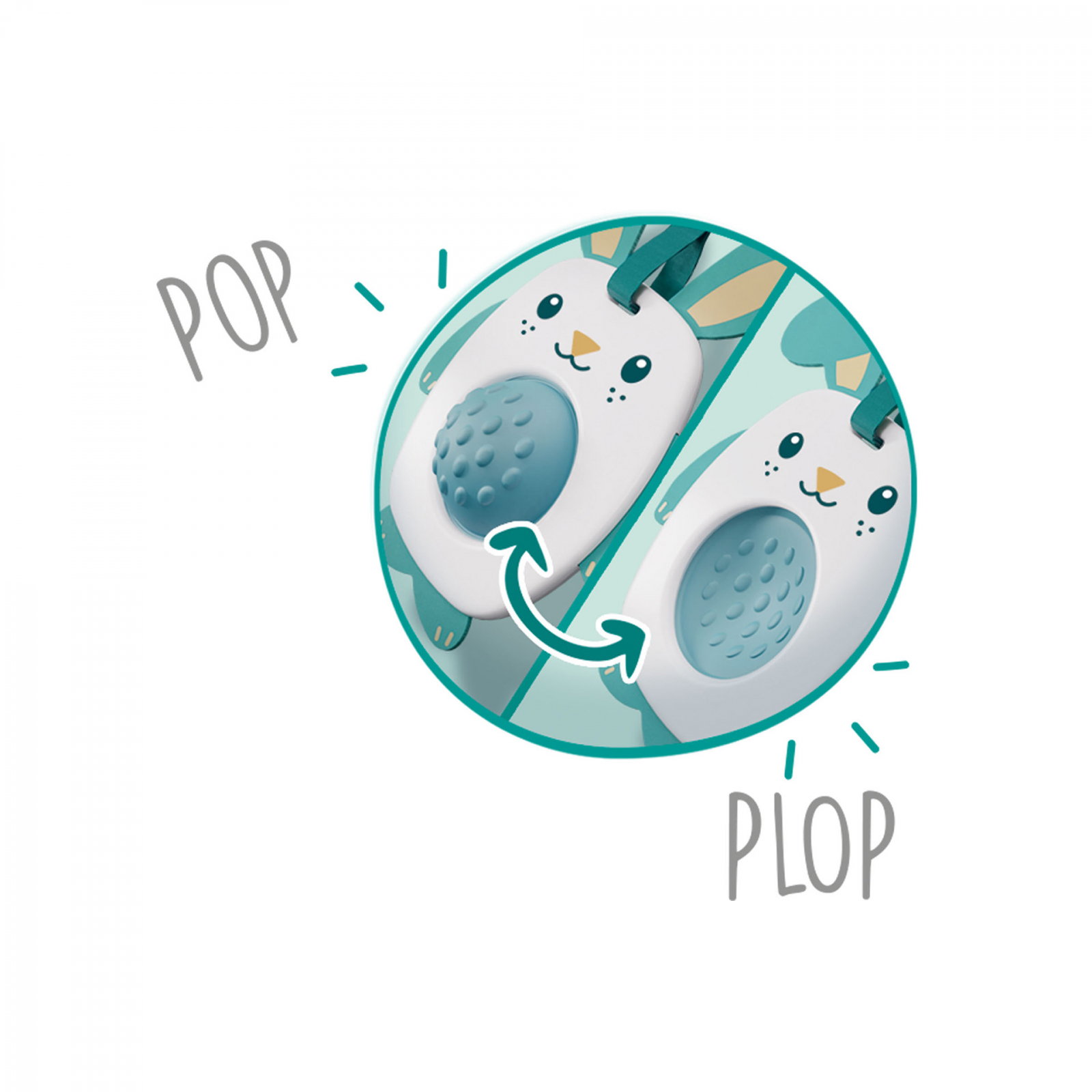 PLOP! Cu aceste jucarii de prindere, copilul tau isi va dezvolta abilitatile motorii fine. Acest iepuras are un corp moale din pasla si o burta cu care te poti juca. Doar apasati burta inauntru si afara si sunetul plop ii va surprinde de fiecare data. Texturile, materialele si sunetul plop fac din aceasta o prima jucarie ideala! Datorita buclei la indemana, il puteti agata oriunde. Dimensiuni: 15 x 20 x 3 cm,