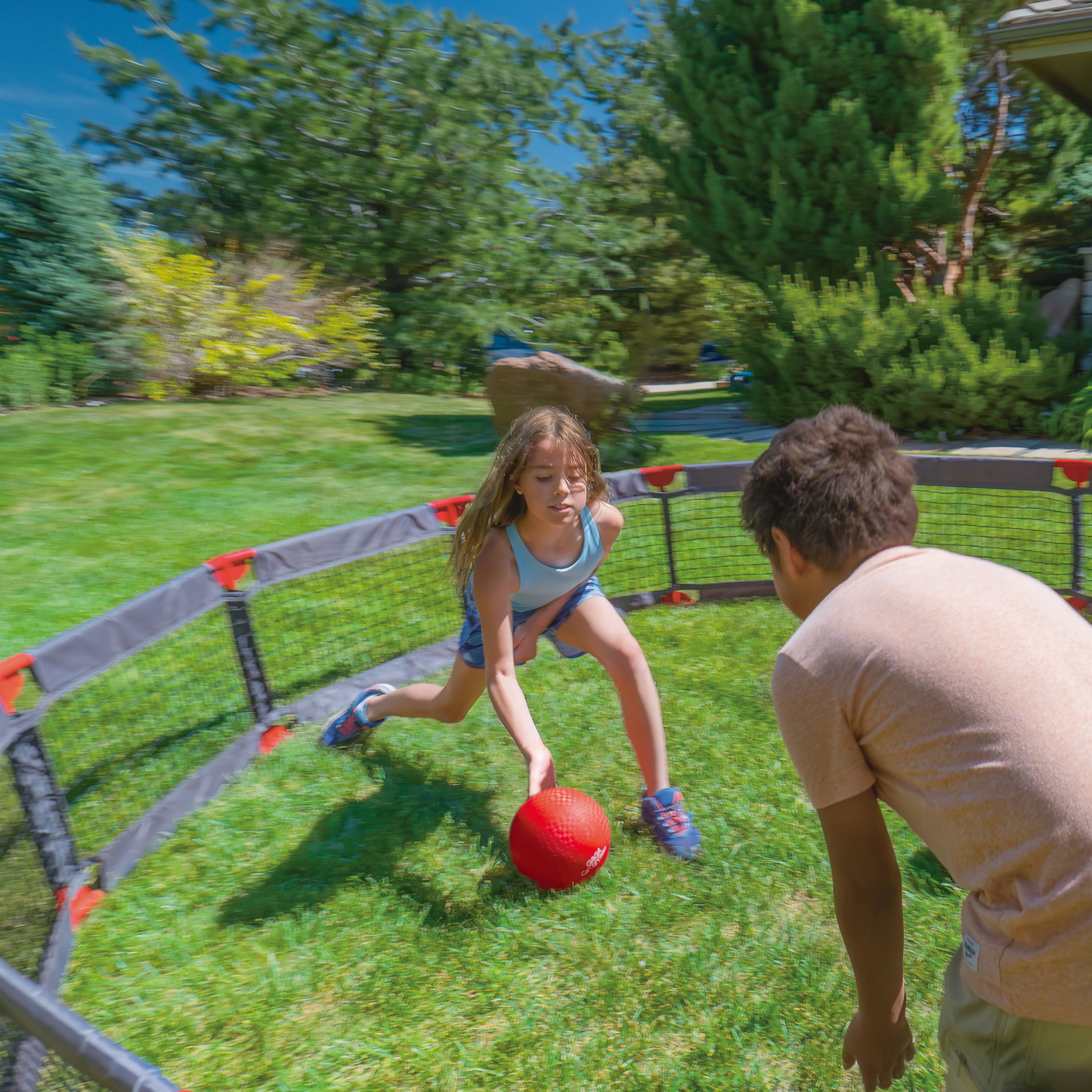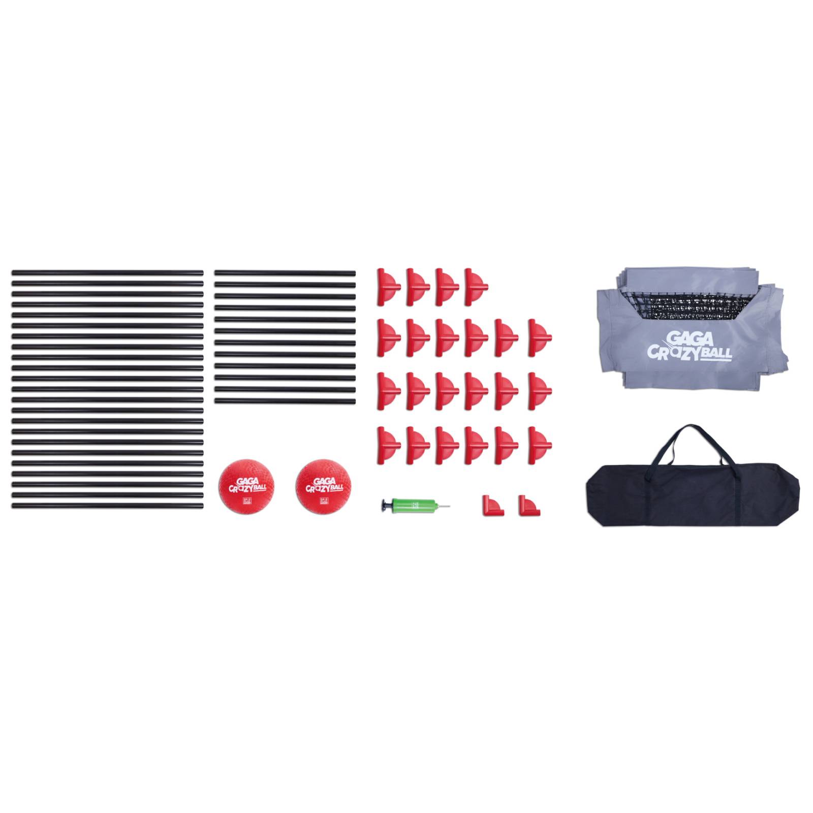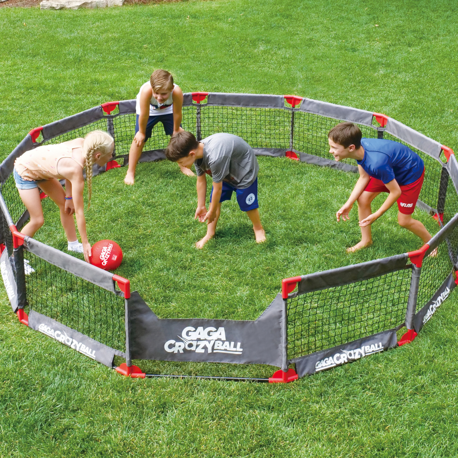 Gaga Ball (cunoscut si ca Ga-Ga) este un joc de grup similar cu dodgeball. S-a raspandit din tabere si scoli pentru a deveni acum un fenomen mondial pe care il aducem in propria ta curte!_x000D_ Jocul se joaca intr-o „Gaga Pit”. Obiectivul este sa lovesti adversarii sub genunchi, evitand in acelasi timp sa fii lovit. Daca jucatorul este lovit sau atins sub genunchi cu mingea, jucatorul este afara si paraseste groapa. Ultimul jucator in picioare castiga runda!_x000D_ Spre deosebire de alte seturi Gaga de acasa, cadrul durabil din otel al lui Gaga CrazyBall este mai puternic si mai sigur. Jucatorii pot folosi peretii ca parte a strategiei lor de joc, iar setul nostru tine pana la jocul fizic!_x000D_ Gaga CrazyBall combina abilitati precum eschivarea, lovirea, alergarea si saritura – toate acestea mentinand copiii activi si sanatosi, incurajand in acelasi timp timpul petrecut impreuna._x000D_ Acest set include un tarc de 10’ x 10’, 2 bile Gaga oficiale si o pompa de mana._x000D_ _x000D_ Dimensiuni: L: 300, l: 300, H: 58 cm,_x000D_ Dimensiuni cutie: L: 75, l: 20, H: 33 cm.