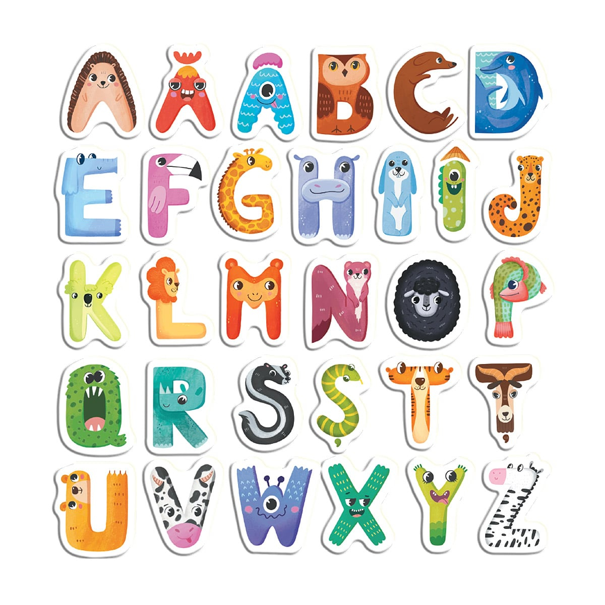 • Setul cuprinde 31 de litere magnetice (inclusiv diacriticele limbii romane) cu un design vesel si viu colorat, in forma de animale, care va atrage atentia copiilor.