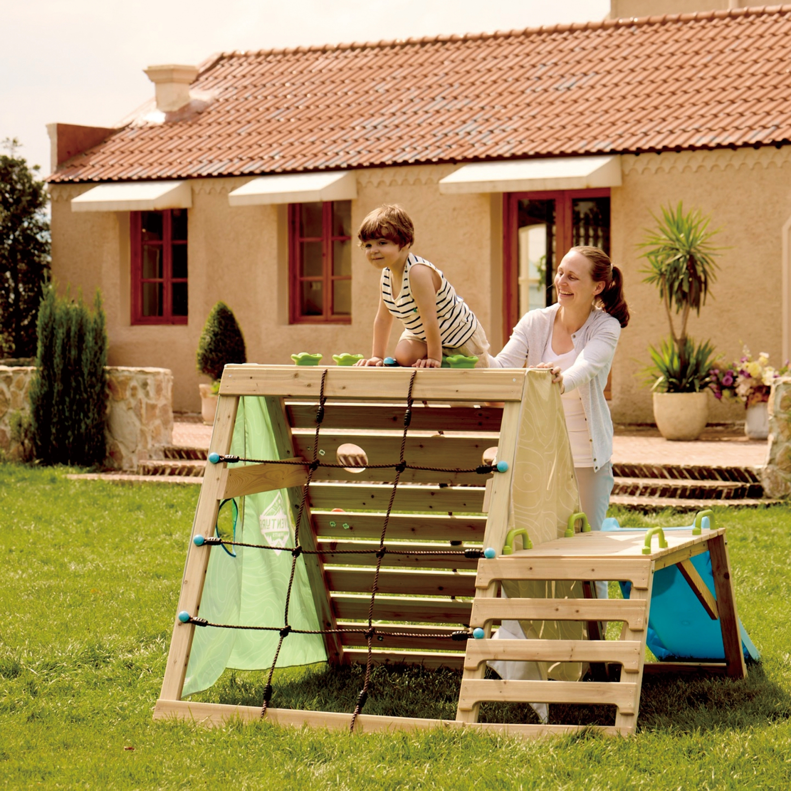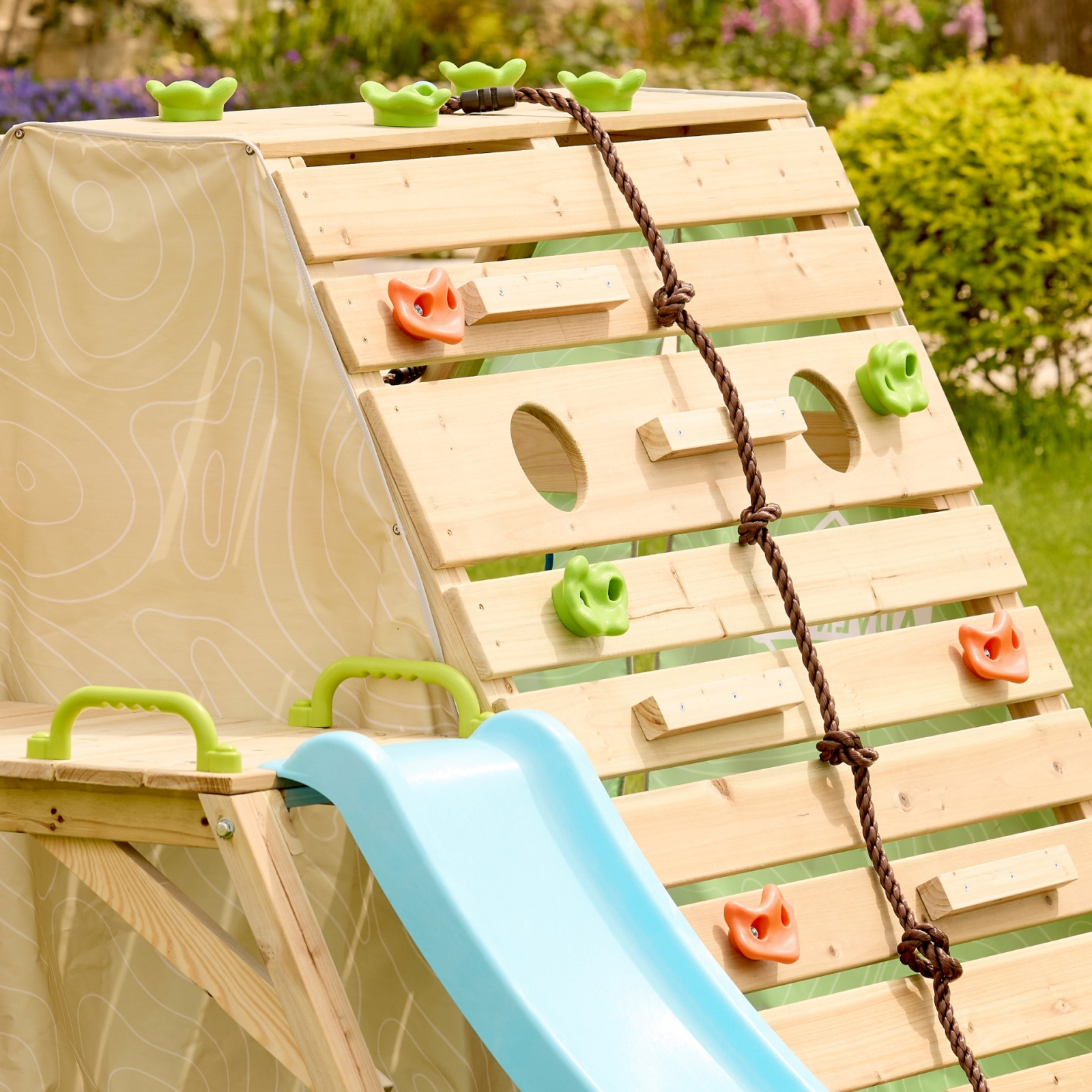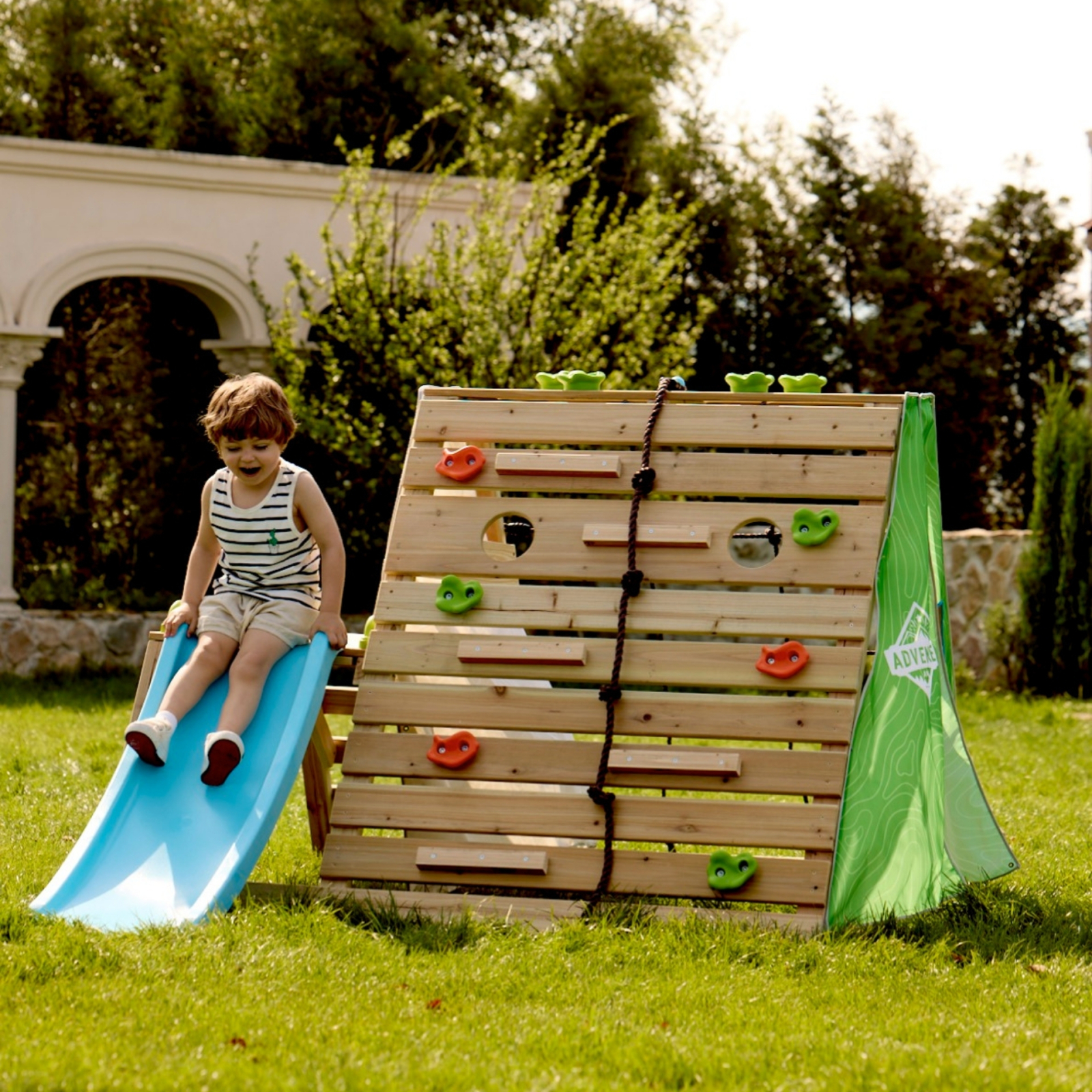 O ascunzatoare confortabila pentru micii exploratori: Imaginati-va ca ochii copilului se largesc de uimire in timp ce pasesc in propria lor cabina cu cadru A! Usile din material colorat ii invita in aceasta cabina fermecatoare si ii imbarca in calatoriile lor imaginative._x000D_ Aventura asteapta: cabina noastra A-Frame este un loc de joaca palpitant pentru tinerii exploratori cu varsta cuprinsa intre 3 si 8 ani. Cu un perete de catarat provocator, cu sase obstacole interesante si franghie de catarat de 4 pi, copiii vor dezvolta coordonarea, forta si increderea in sine pe masura ce inving fiecare obstacol._x000D_ Urca, aluneca, exploreaza: cu o plasa de incarcare pentru catarare si un tobogan insufletitor, copiii isi dezvolta agilitatea, echilibrul si rezistenta. Este o joaca sanatoasa, deconectata si plina de bucurie. Amintiti-va, cabina noastra A-Frame nu este doar o structura de joaca, ci este o poarta catre crestere si incredere pentru micii aventurieri!_x000D_ _x000D_ Dimensiuni: L: 161, l: 221, H: 123 cm,_x000D_ Dimensiuni cutie: L: 121.5, l: 43.5, H: 31.5 cm.