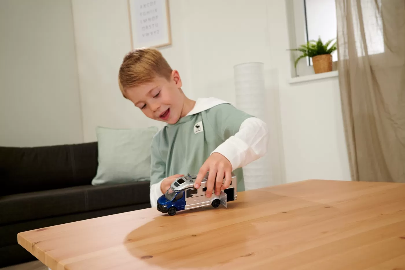 Majorette Camper van HYMER B-Class MasterLine rulota premium la scara 143, vehicul de jucarie pentru colectionari si copii cu varsta de 3 ani si peste.