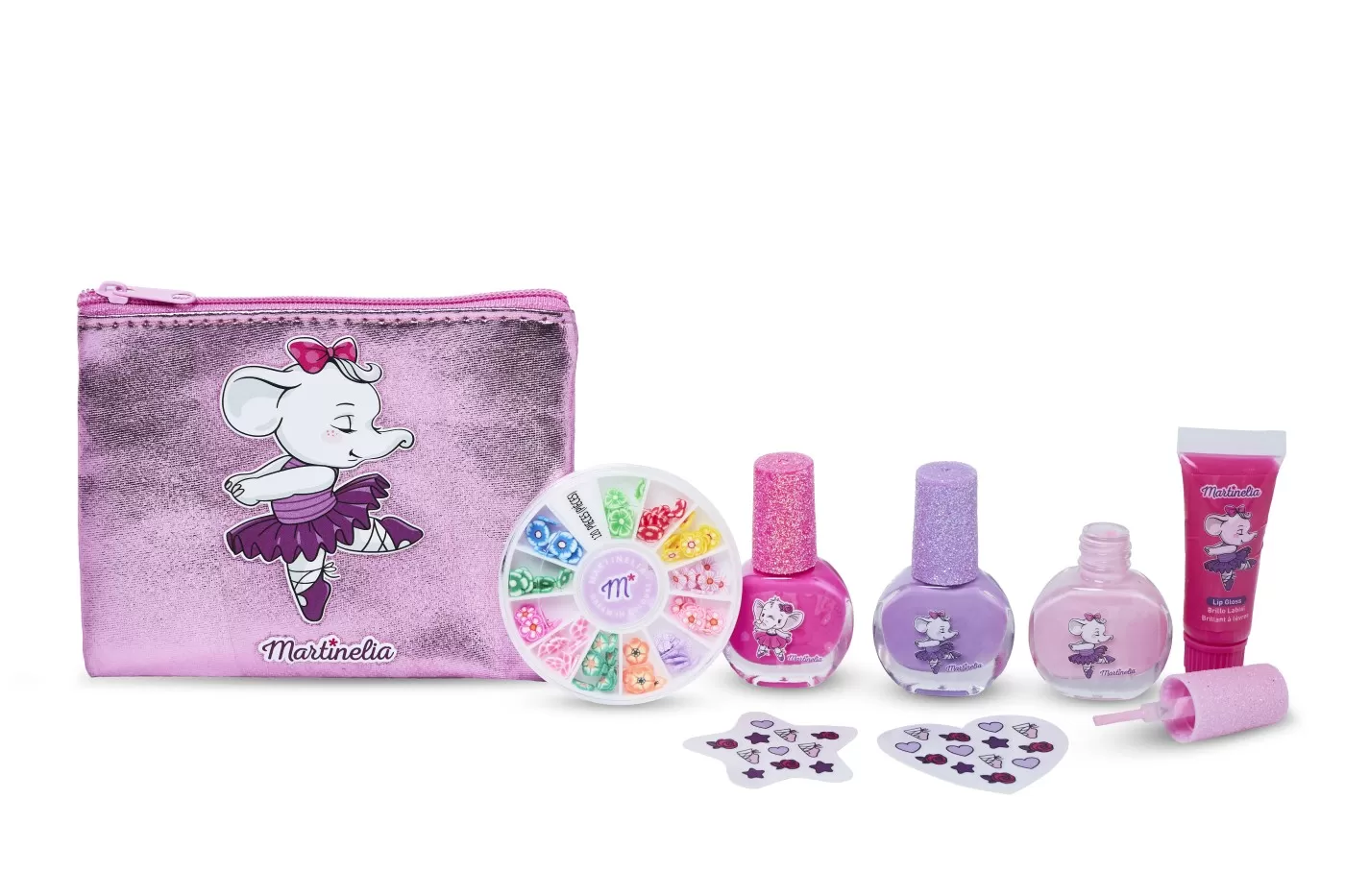 Acest set cu un elefant in fusta de balet este ideal pentru iubitorii de roz. Pachetul contine 3 lacuri de unghii solubile in apa 4ml, 1 balsam de buze 6ml, carusel cu 120 decoratiuni florale, autocolante Magic Ballet, borseta pentru cosmetice. Ingrediente Oja Pe Baza De Apa Apa, Stiren/Copolimeri Acrilati, Acid Poliacrilic, Propilenglicol, Silica, Fenoxietanol, Parfum, Limonen, Linalol, Citronelol, Colorant Ci 77742, Ci 158501, Ci 77891, Ci 45410, Ci 19140, Ci 15850. Martinelia este un brand care face parte din grupul Aquarius Cosmetic SL , principalul distribuitor de parfumuri si cosmetice in Spania inca din anul 1995. in ziua de astazi, brandul se gaseste in toata lumea, nu doar in Spania. Produsele brandului la Martinelia pot fi recunoscute cu usurinta datorita ambalajului unic si jucaus. in oferta brandului Martinelia veti gasi seturi de cadouri, accesorii pentru par, popularele balsamuri de buze aromate si alte accesorii care vin in ambalaje haioase. Copiii vor fi incantati de produse precum setul decorativ in forma de ursulet, peria de par unicorn sau periuta de dinti cu sirene. Martinelia ofera pentru cei mici o gama larga de produse distractive si inovatoare in toate culorile curcubeului. Seturi de machiaj, rujuri si tot felul de produse si accesorii concepute pentru a tine pasul cu ultimele tendinte. Produsele sunt sigure si prietenoase cu mediul fiind special proiectate pentru a putea fi folosite de copii.