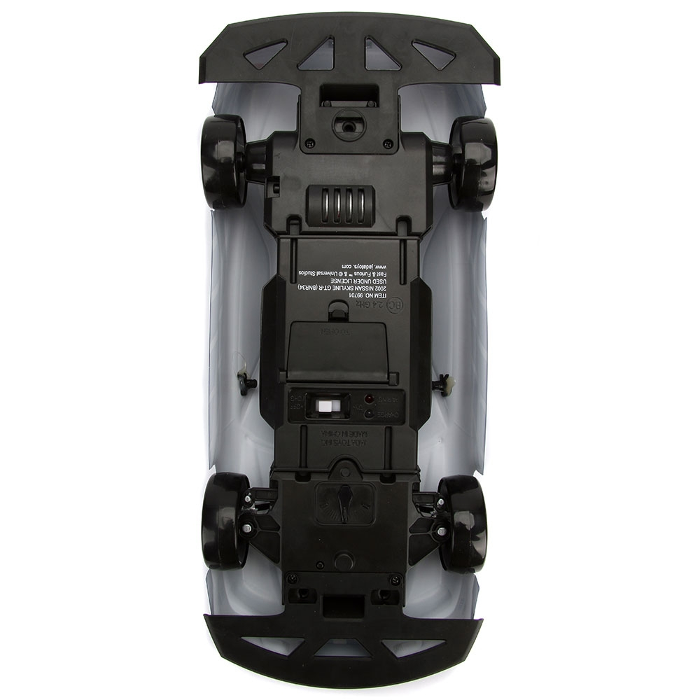 • Masinuta Jada Toys Nissan Skyline GTR poate fi controlata la distanta cu ajutorul telecomenzii la o frecventa de 2,4 Ghz