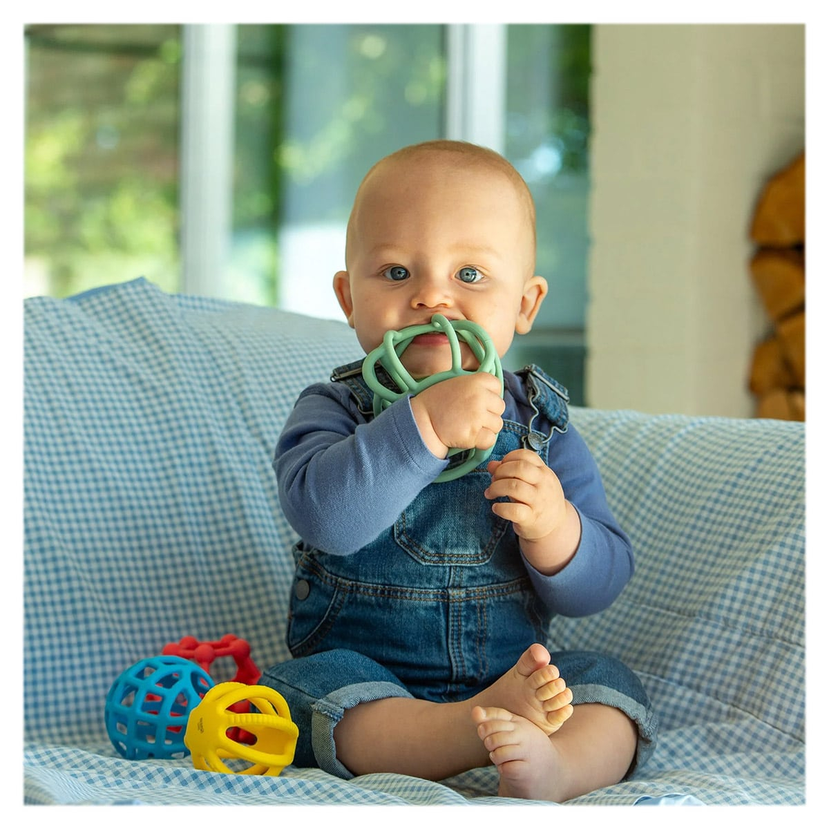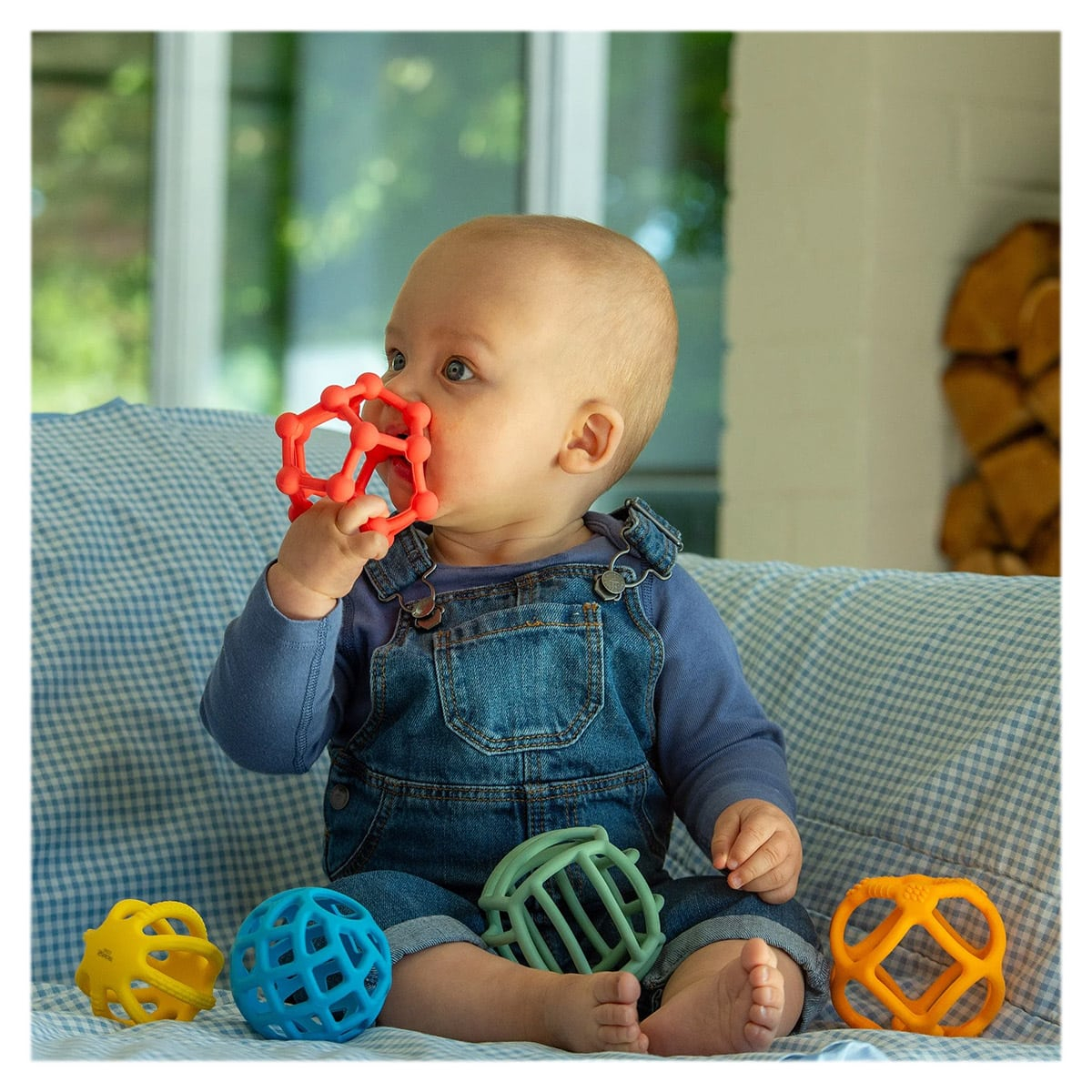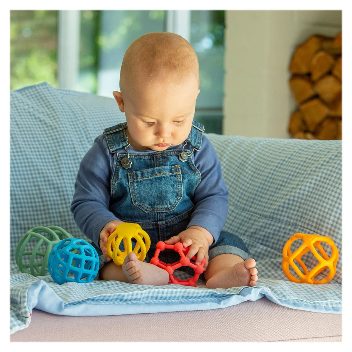 • Textura moale si elastica a acestor mingi le face ideale pentru mainile mici: copiii pot sa le apuce, sa le stranga, sa le intinda, sa le roada si sa exploreze senzatii tactile.