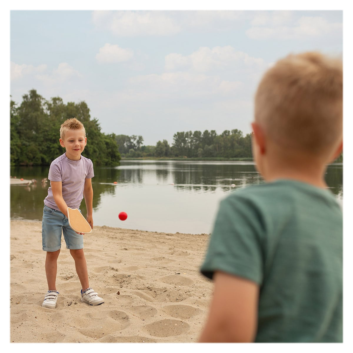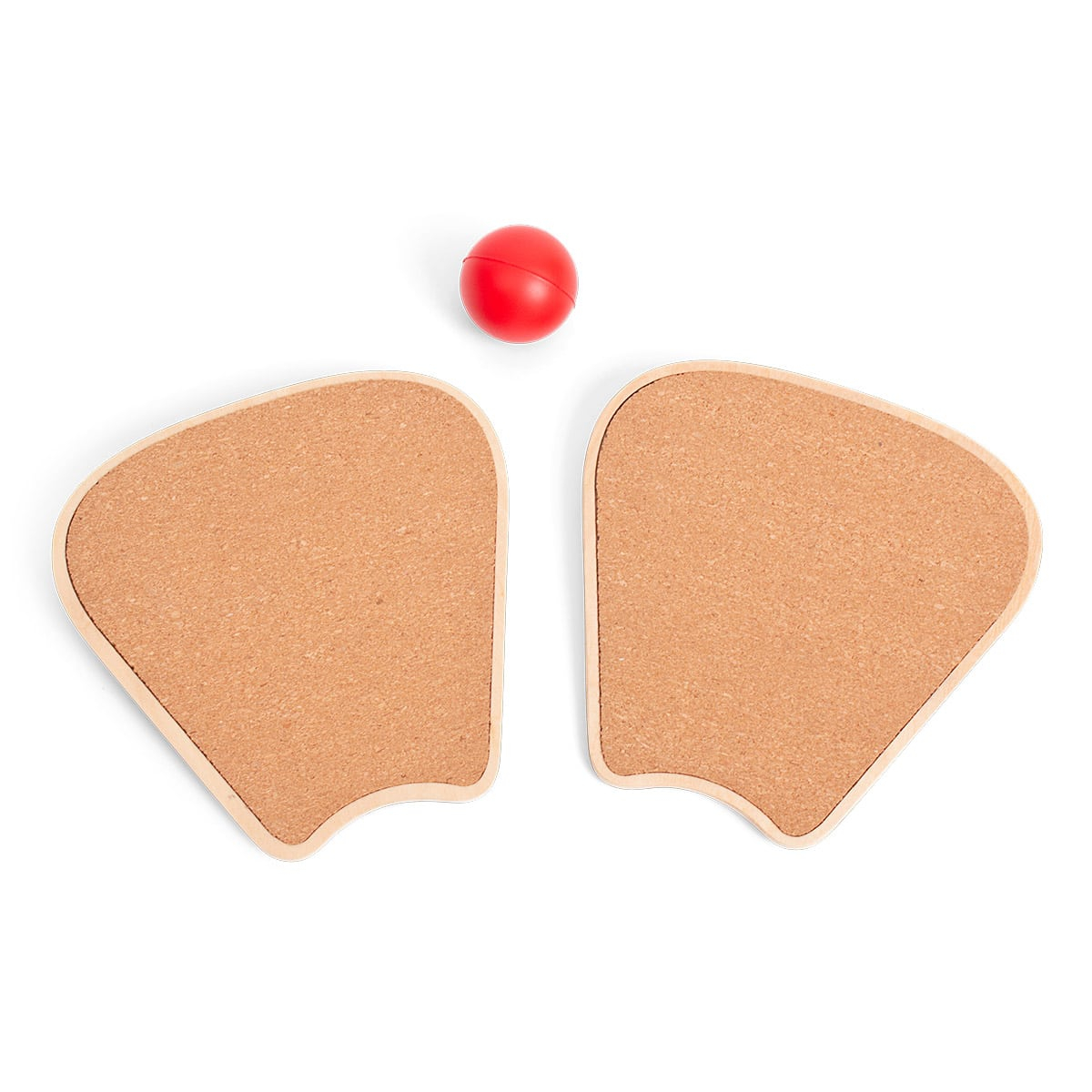 • Contine: 2 palete din lemn cu fata din pluta (19 x 19 cm), 1 minge cu diametru de 5 cm.