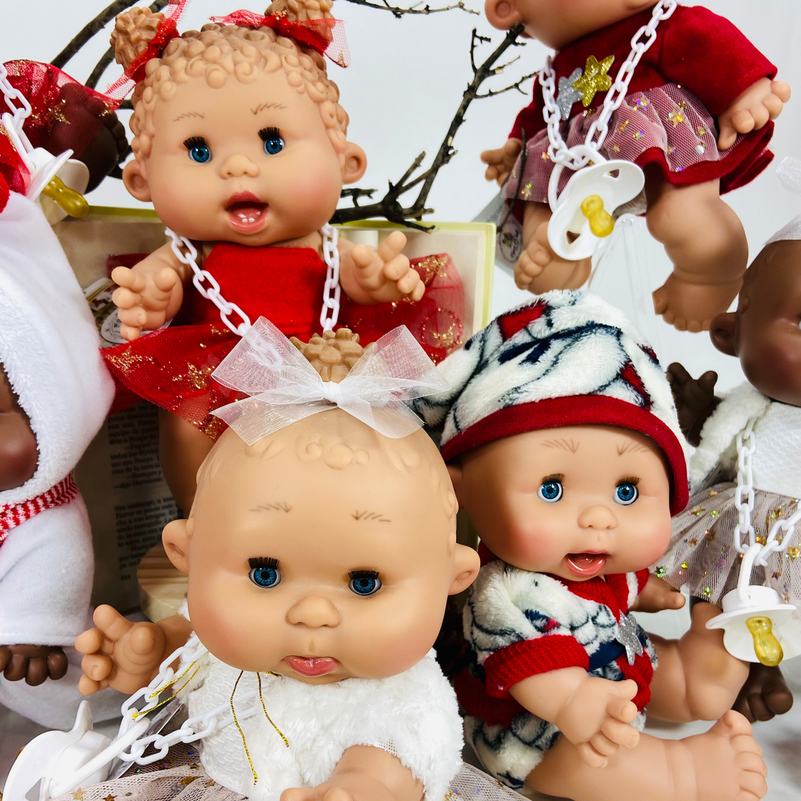 Papusile din colectia Pepote Craciun sunt papusile pe care le vei iubi pentru fetele lor amuzante. Ca si caracteristici ale acestor papusi dragute sunt rochiile haioase, sunt de gen (baiat/fata) si se pot spala. Au un miros usor de vanilie.