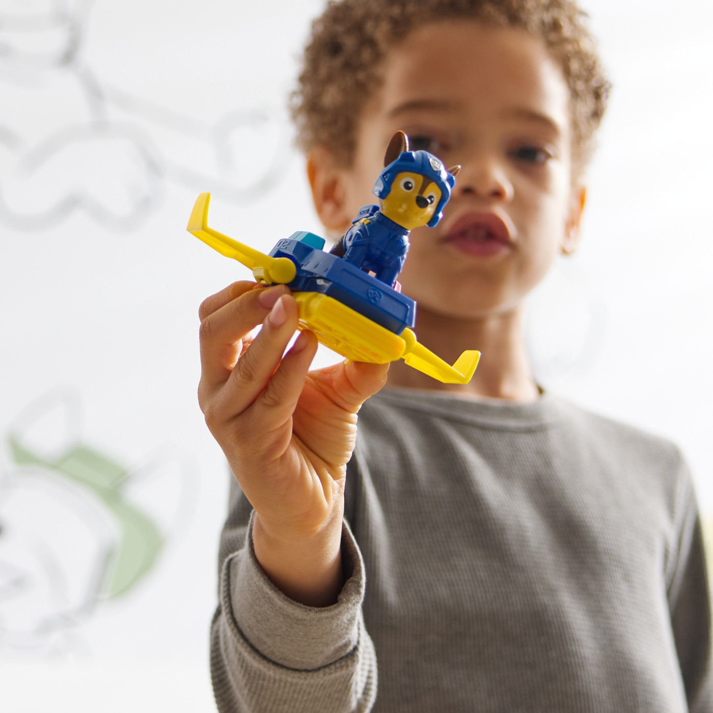 Zboara in actiune cu Action Pups figurina Patrula catelusilor si minunatul sau vehicul de salvare hoverboard. Cand este timpul pentru o misiune de salvare plina de actiune, prinde picioarele figurinei pe pozitie si extinde aripile hoverboard-ului, transformandu-l intr-un avion de jucarie captivant, inainte de a zbura intr-o misiune de salvare plina de adrenalina. Figurina are o inaltime de peste 5 cm si este echipat cu jacheta de zbor albastra si casca de pilot, la fel ca in serial. Pentru si mai multe moduri interesante de a te juca, cauta-i pe Marshall, Skye, Rubble, Rocky si Zuma, pentru a forma cea mai buna echipa de salvare. Jucariile pentru prescolari din Patrula catelusilor si jucariile de invatare pentru copii mici sunt cadouri pentru copiii care sunt fani ai serialului, incurajand jocul plin de imaginatie si imbunatatirea abilitatilor motorii fine. Retraieste momentele tale preferate din sezoanele Patrulii catelusilor, cum ar fi Mighty Pups si filmul Patrula catelusilor, apoi creeaza-ti propriile aventuri cu cateii din Patrula catelusilor si masinutele lor corespunzatoare (fiecare se vinde separat). Creste-ti entuziasmul cu seturile complete ale echipei Action Pups si Air Rescue, care includ vehicule din Patrula catelusilor, personaje de actiune si jucarii pentru copiii mici, pentru ore nesfarsite de aventuri cu catelusi, inspirate din serial. Acest set contine figurina Chase.