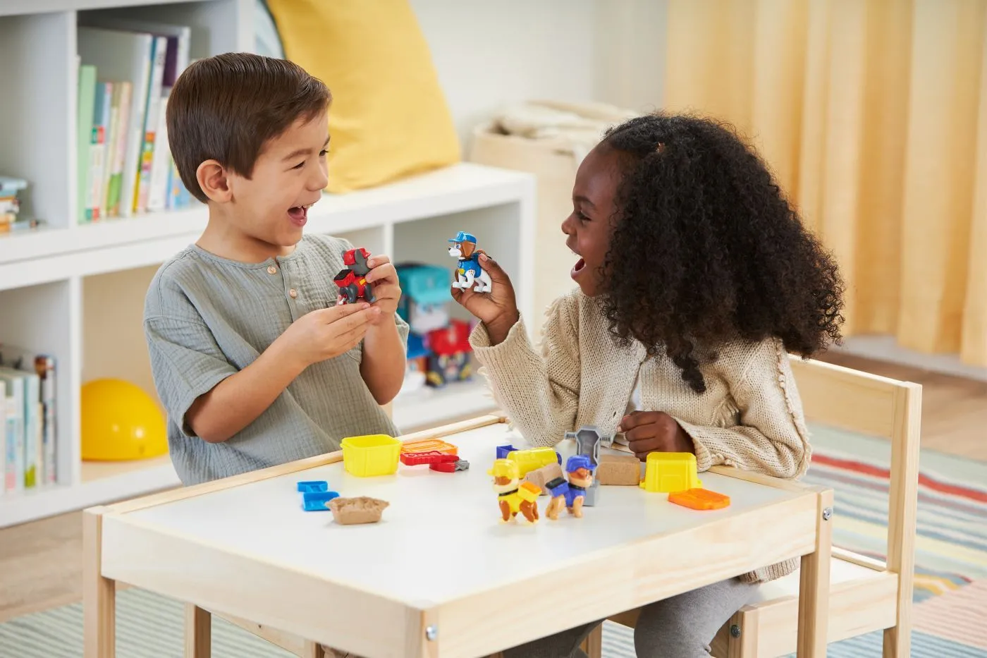 Alatura-te echipei Rubble & Crew cu setul Charger & Wheeler Build-It Pack! Acest pachet distractiv include doua figurine adorabile Charger si Wheeler pregatite pentru actiune in costumatia lor de constructori. Setul contine si accesorii tematice de santier, inclusiv un disc rotativ, o cuva albastra si un recipient cu nisip kinetic pentru si mai multa distractie creativa. Joaca-te, construieste si creeaza aventuri impreuna cu personajele tale preferate din universul Nickelodeon. Recomandat copiilor peste 3 ani.
