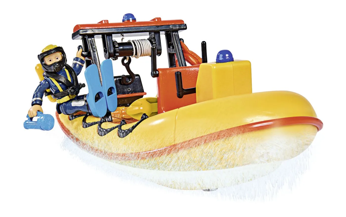 Barca de cautare si salvare - vehiculul de salvare al pompierului Sam poate fi folosit de catre pompierul Sam si colegii sai din Pontypandy. Penny, imbracata intr-un costum de scafandru, si-a luat locul la volan. Pentru operatiuni de salvare pe si in apa - cu Barca mare de 20 cm, victimele accidentului sunt transportate rapid la cel mai apropiat spital sau se efectueaza perchezitii mari organizat pentru supravietuitori. Barca este echipata cu troliu mecanic cu cablu si pluteste pe apa.