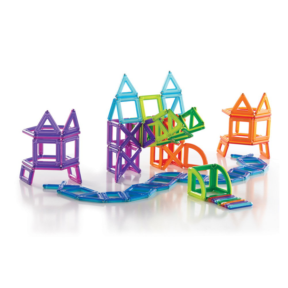 • Setul contine 100 de piese magnetice in 8 forme si culori diferite, care creeaza posibilitati nelimitate de constructie si o brosura cu modele pentru a alimenta inspiratia.