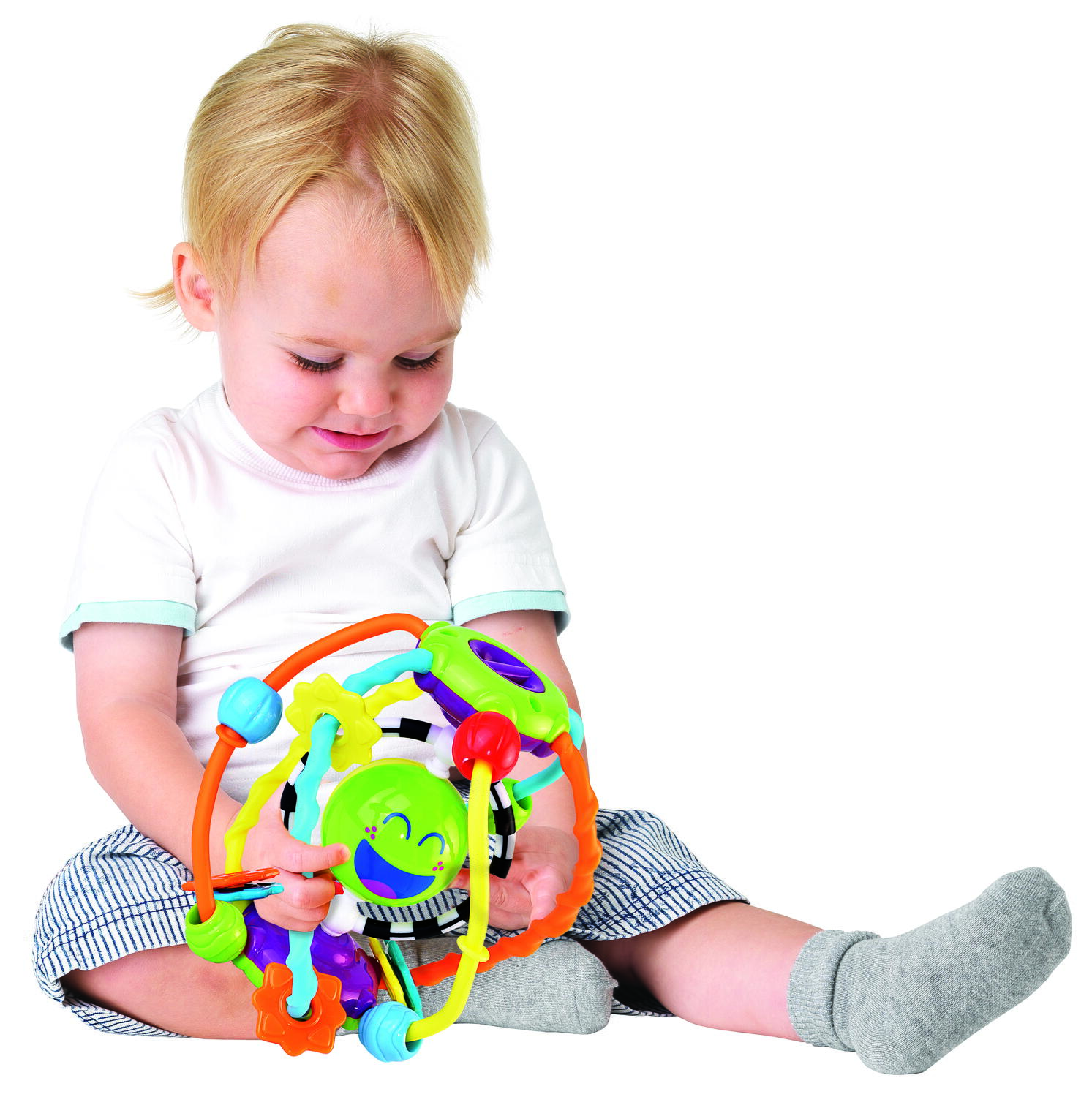 Aceasta jucarie vesela si colorata este special conceputa pentru a stimula curiozitatea si dezvoltarea celor mici inca de la 6 luni!_x000D_ Caracteristici: _x000D_ _x000D_ personaj simpatic cu fata amuzanta rotativa in centru_x000D_ flori si bilute care aluneca pe traseu si o rotita cu sunet click-click_x000D_ oglinda pe partea opusa pentru descoperirea propriei imagini_x000D_ design usor de apucat, perfect pentru mainile mici ale bebelusului_x000D_ miscarea de rostogolire stimuleaza mersul de-a busilea al bebelusului_x000D_ stimuleaza joaca prin explorare si descoperirea senzoriala_x000D_ produs realizat, din plastic rezistent, fara BPA, special conceput pentru a fi sigur in mainile copiilor mici_x000D_ suprafetele sunt netede, fara margini ascutite, iar componentele sunt bine fixate pentru a preveni desprinderea accidentala_x000D_ este usor de curatat si durabil in timp, chiar si in conditii de utilizare intensa_x000D_ _x000D_ Dimensiune produs: 14.9 x 13.3 x 16.8 cm_x000D_ Varsta recomandata: 6 luni+_x000D_ _x000D_ Atentie! Pentru siguranta copilului toate ambalajele, cum ar fi banda adeziva, folii plastic, legaturi din sarma si etichete si care nu sunt piese ale jocului trebuie aruncate. Va rugam sa supravegheati copilul in timp ce se joaca/foloseste acest produs. Jucaria/produsul se poate curata cu o carpa usor umeda._x000D_