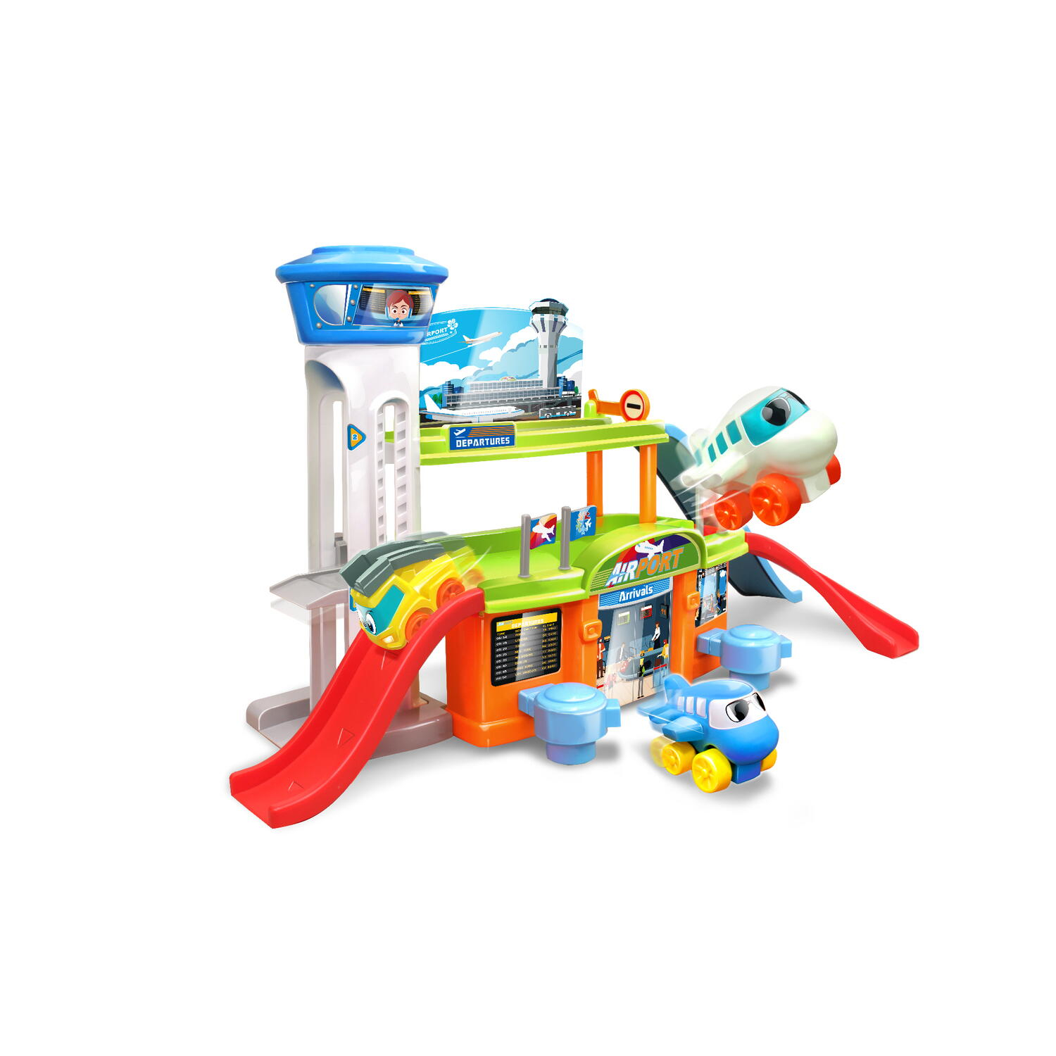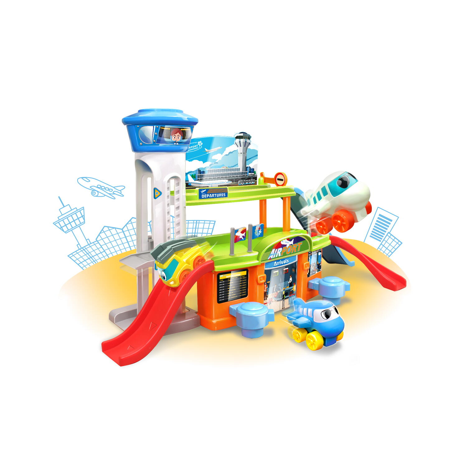 Pregateste-te de decolare! „Primul Meu Aeroport” este un set de joaca interactiv si colorat, perfect pentru micii pasionati de avioane si aventuri aeriene_x000D_ Caracteristici:_x000D_ _x000D_ Gandit pentru a stimula imaginatia si a dezvolta abilitati importante, acest set transforma fiecare moment de joaca intr-o experienta educativa si plina de actiune_x000D_ Aeroport supraetajat este o constructie pe doua niveluri care adauga dinamism si realism jocului_x000D_ Rampele de urcare/coborare, faciliteaza deplasarea vehiculelor intre niveluri, incurajand jocul logic si explorarea_x000D_ Incurajeaza gandirea critica si planificarea spatiala, copilul invata cum sa asambleze, sa organizeze trasee si sa isi construiasca propriul scenariu_x000D_ Dezvolta indemanarea si motricitatea fina prin manipularea pieselor si construirea aeroportului_x000D_ Toate piesele sunt realizate din plastic durabil, rezistent la impact, cu margini rotunjite, special concepute pentru siguranta celor mici in timpul jocului_x000D_ _x000D_ Setul include 25 piese:_x000D_ _x000D_ aeroport supraetajat_x000D_ rampe de urcare/coborare_x000D_ 1 masinuta de serviciu aeroportuar_x000D_ 2 avioane colorate_x000D_ piese modulare_x000D_ _x000D_ Dimensiune ambalaj: 45.4 x 37.8 x 7.9 cm_x000D_ Varsta recomandata: 12 luni+_x000D_ Atentie! Pentru siguranta copilului toate ambalajele, cum ar fi banda adeziva, folii plastic, legaturi din sarma si etichete si care nu sunt piese ale jocului trebuie aruncate. Necesita asamblare de catre un adult. Va rugam sa supravegheati copilul in timp ce se joaca/foloseste acest produs. Jucaria/produsul se poate curata cu o carpa usor umeda. _x000D_