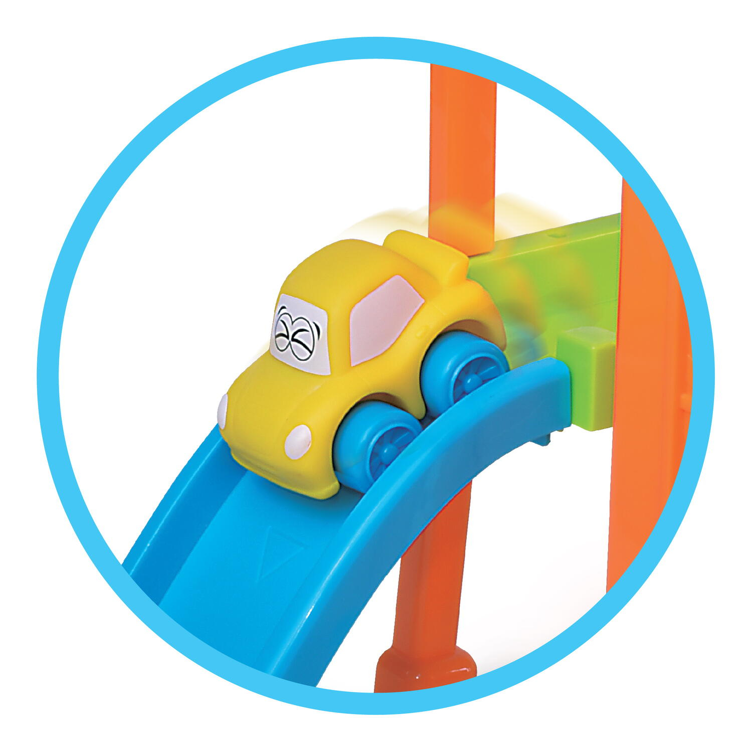 conceput special pentru copiii de la 12 luni in sus, acest garaj stimuleaza imaginatia, coordonarea si jocul de rol_x000D_