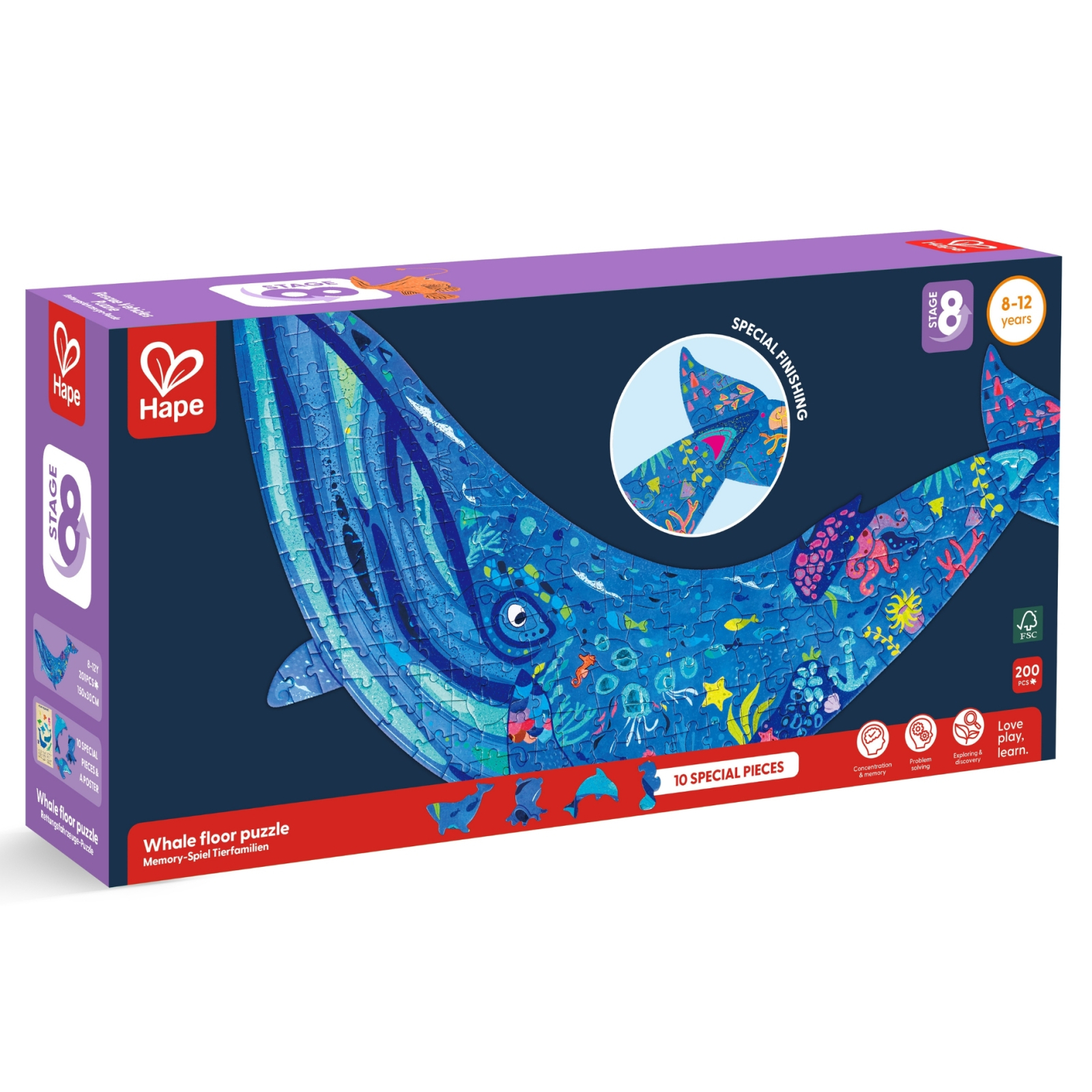 Hape Puzzle - Balena cu cocoasa cu piese tematica ocean, 200 piese, copii varsta 8 ani+