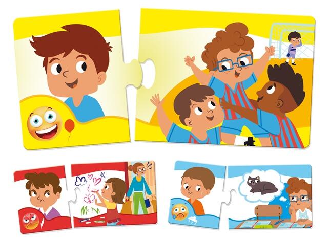 Descopera impreuna cu cei mici lumea emotiilor intr-un mod captivant si educativ cu ajutorul acestui set de puzzle-uri distractive! Conceput special pentru a stimula imaginatia si intelegerea emotiilor, acest joc ofera o modalitate interactiva de invatare si dezvoltare pentru copiii tai.