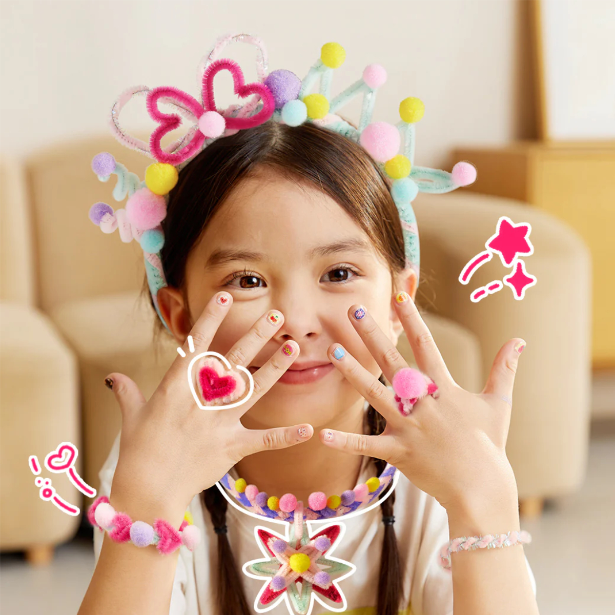 Explorati universul infinit al culorilor si formelor cu Chenille Stem Craft Collection, un kit versatil care transforma firele de plus flexibile in adevarate opere de arta purtabile. Acest set este poarta de acces catre designul de moda pentru micii artisti, oferindu-le posibilitatea de a modela, rasuci si asambla accesorii precum ochelari decorativi, bentite sau clipsuri de par. Procesul creativ este simplificat prin includerea formelor de ghidaj, asigurand rezultate estetice deosebite chiar si la prima utilizare. Este mai mult decat un joc; este un exercitiu de exprimare personala care incurajeaza copiii sa isi materializeze viziunea artistica intr-un mod distractiv si relaxant.