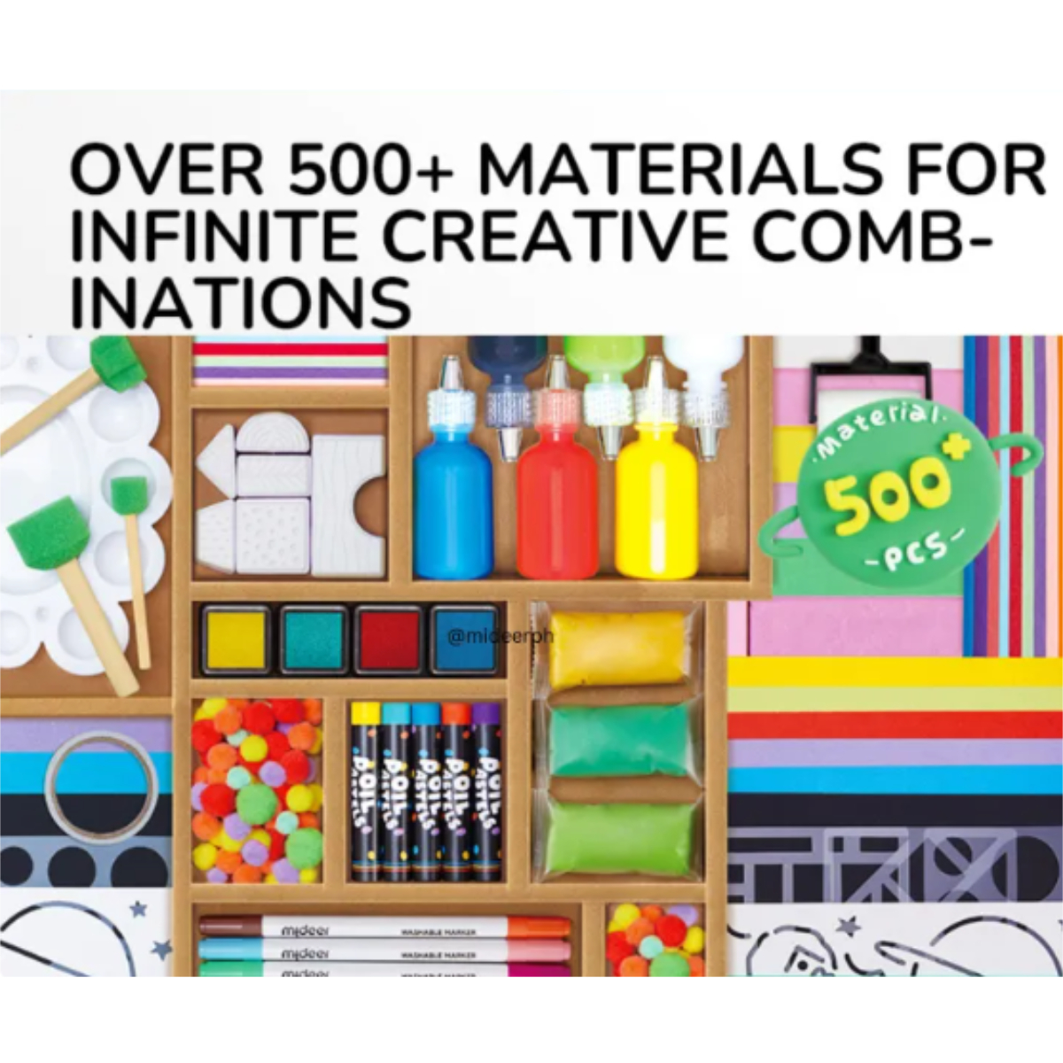 Explorati o lume fara limite creative cu acest kit de arta ultra-curatoriat, conceput sa fie resursa definitiva pentru micii artisti. Cu un inventar impresionant de peste 500 de elemente, acest set transforma orice spatiu intr-un atelier de creatie profesional.