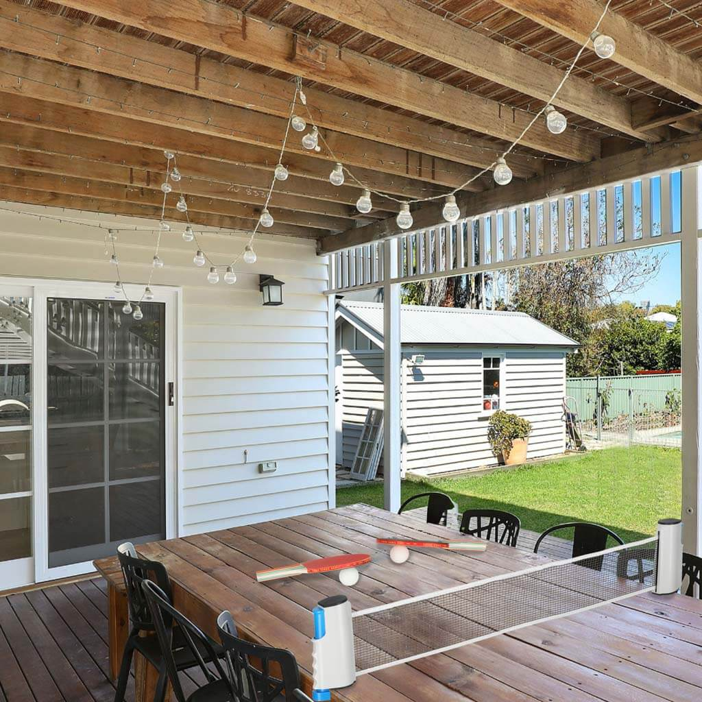 Acest produs este un set complet de tenis de masa ping pong, format din 2 palete, 3 mingi si un fileu reglabil, conceput pentru joc recreativ atat pentru copii, cat si pentru adulti. Setul poate fi montat rapid pe aproape orice masa, transformand-o intr-o masa de ping pong functionala, fara a fi nevoie de echipamente dedicate. Este potrivit pentru joaca acasa, in curte, in vacanta sau la scoala, oferind o solutie simpla si portabila pentru activitati sportive.