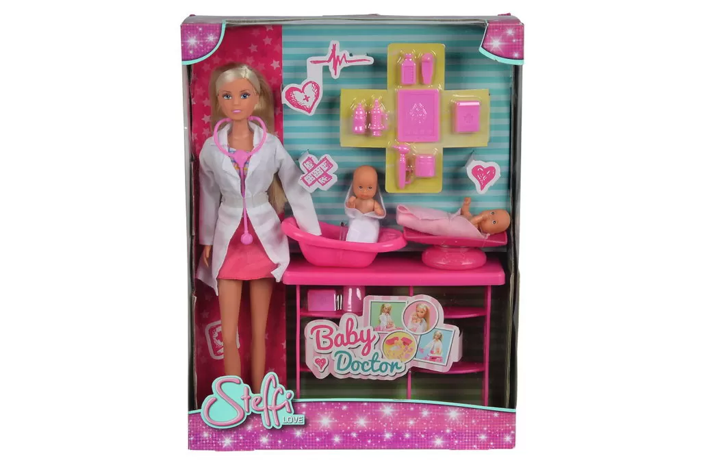 Set papusi Steffi Love Asistenta cu bebelusiPapusa doctorita pediatru Steffi Love de 29 cm cu doi bebelusi de 5 cm si multe accesorii masuta, cantar, cadita si altele.Varsta recomandata +3 ani.Dimensiune papusa Steffi 29 cm.Dimensiune papusa bebe 5 cm.