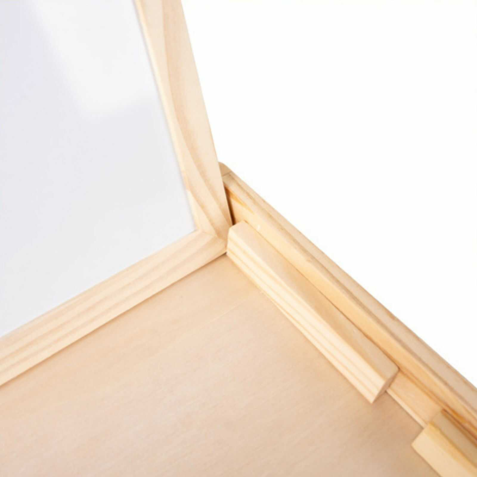 Cutia din lemn functioneaza ca suport pentru tabla si spatiu de depozitare pentru toate accesoriile, mentinand organizarea.