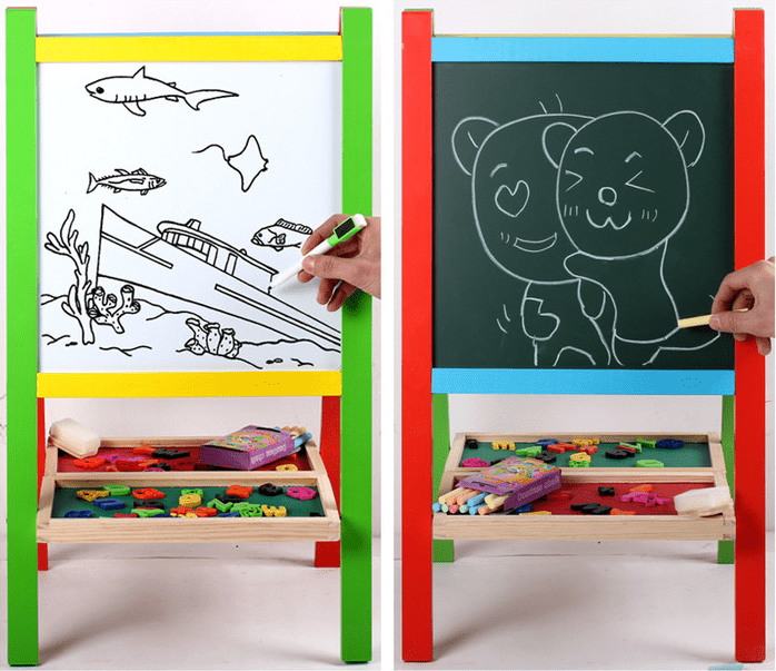 Usor de Utilizat: Tabla include un marker cu buretel si creta, iar suportul pentru accesorii asigura organizarea eficienta a materialelor de scris.